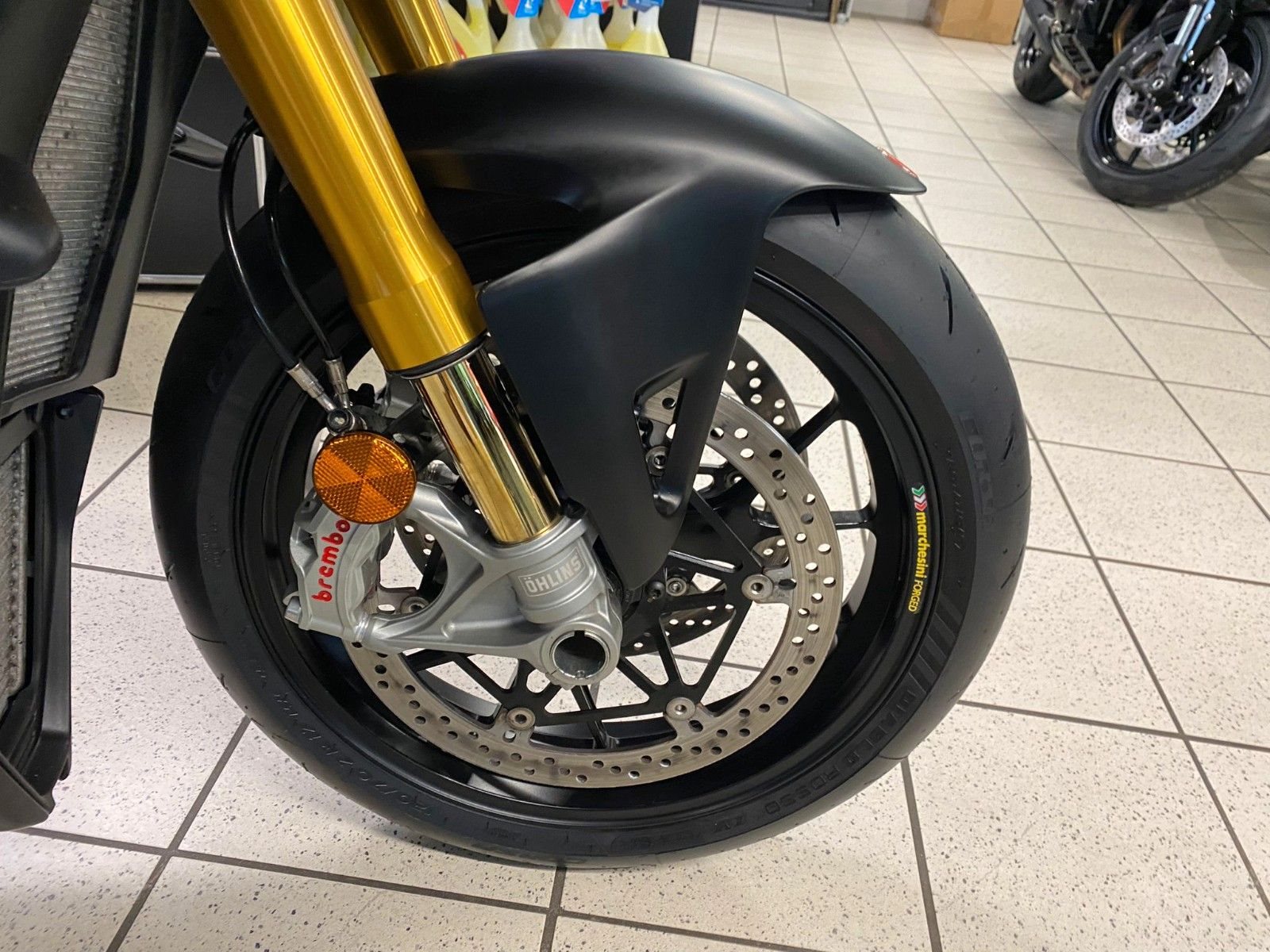 - herrliches, elektronisch verstellbares Öhlins-Fahrwerk
