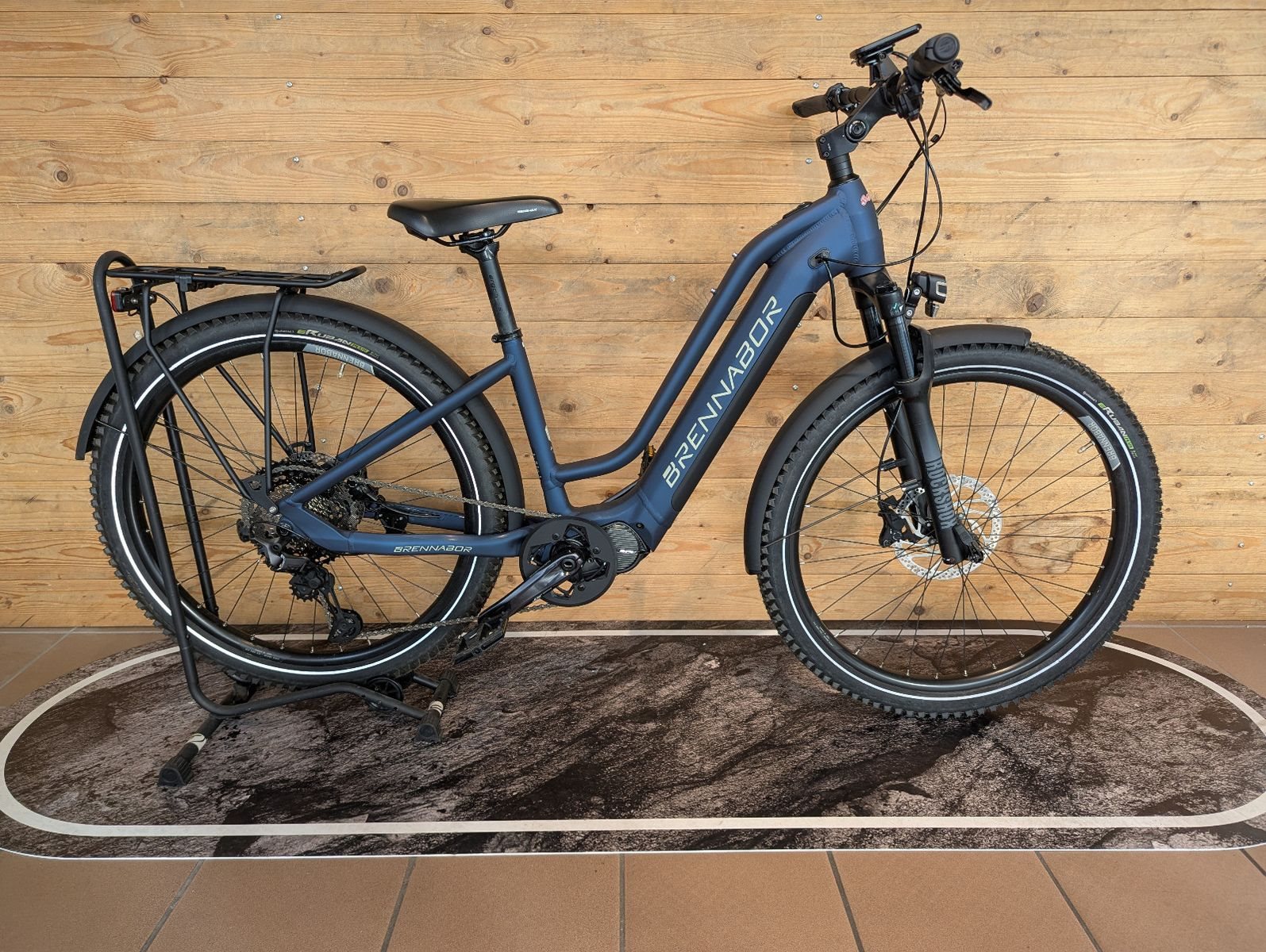 Brennabor A-98e - Technische Artikelbeschreibung Das Brennabor A-98e ist ein sportliches SUV-E-Bike mit kräftigem Shimano-Antrieb und robusten Komponenten, konzipiert für vielseitige Nutzung von Alltag über Touren bis anspruchsvollere Wege. Das Elektro-Bike kombiniert einen leistungsfähigen Mittelmotor, eine hochwertige Schaltung mit stabiler Federgabel und umfangreiche Ausstattung für Komfort und Sicherheit. Antrieb & Batterie* Mittelmotor: Shimano STEPS EP8, 250 W, ca. 85 Nm Drehmoment - unterstützt bis 25 km/h Pedelec-Norm.