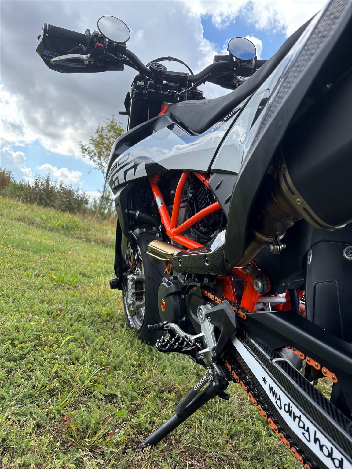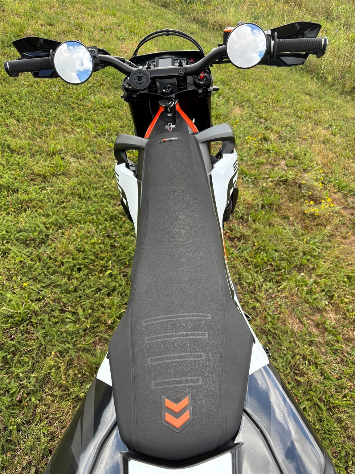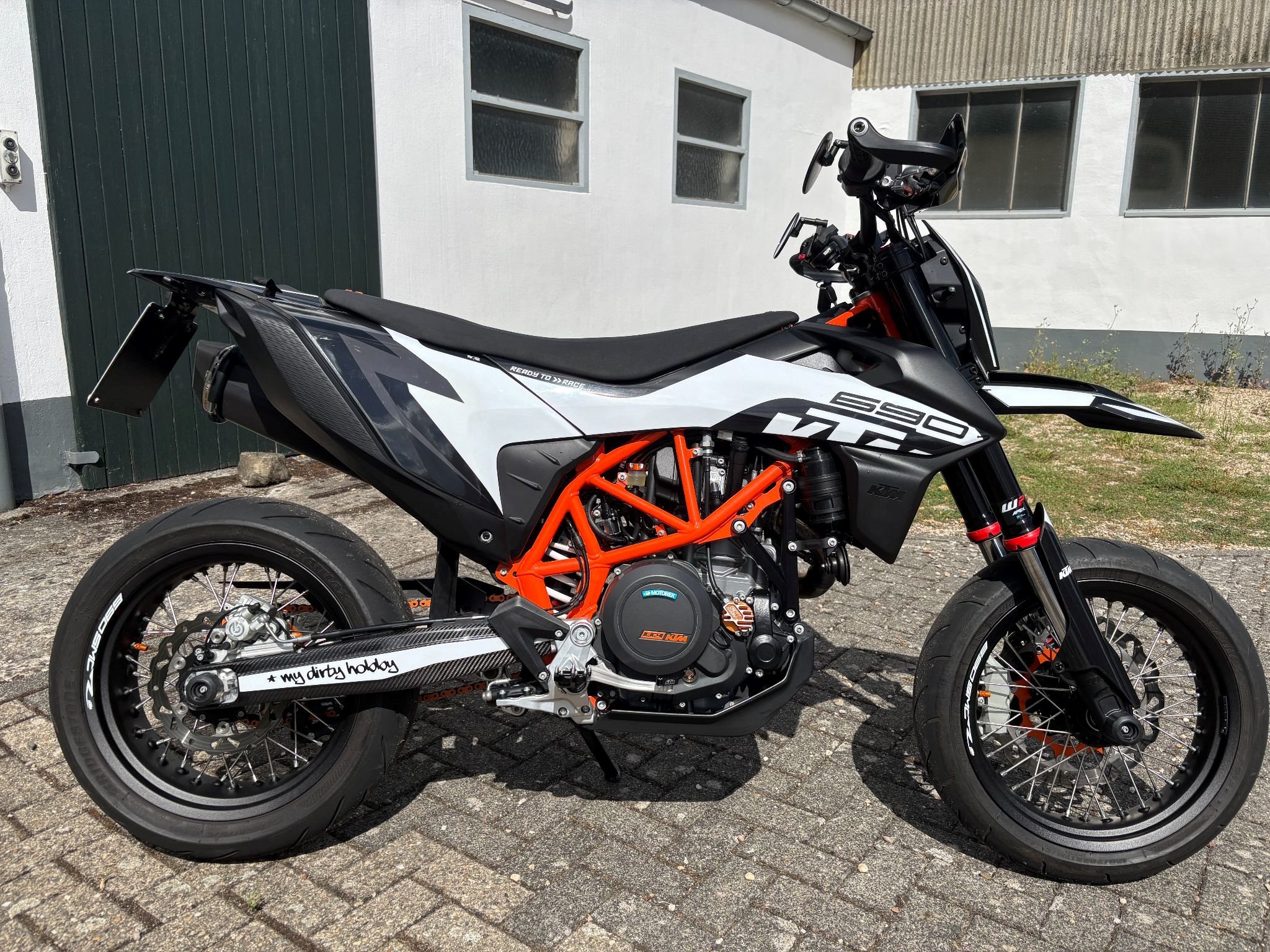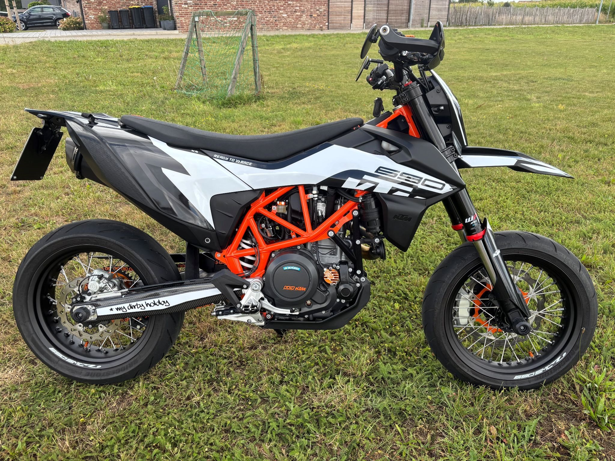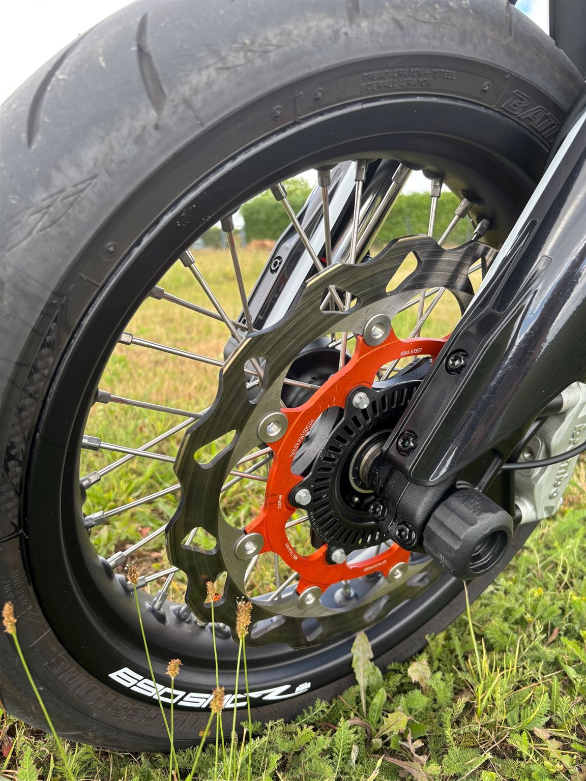 Die Supermoto ist in hervorragendem, beinah neuwertigem Zustand und hat alle Inspektionen gesehen, zuletzt noch die "Große" im August. TÜV und hinterer Reifen sind neu, ebenso die zusätzliche Anzeige von Cumpan, die die reale Drehzahl wiedergibt, sowie z. B. Außen- und Öltemperatur. Das sind in Summe somit alleine schon rund 1.500,- €uro, die in den vergangenen 6 Monaten in das Motorrad geflossen sind und nicht mehr investiert werden müssen. Ich bin der zweite Besitzer und habe sie vom Händler erst Anfang letzten Jahres bezogen. Folgendes Zubehör ist am Motorrad verbaut: