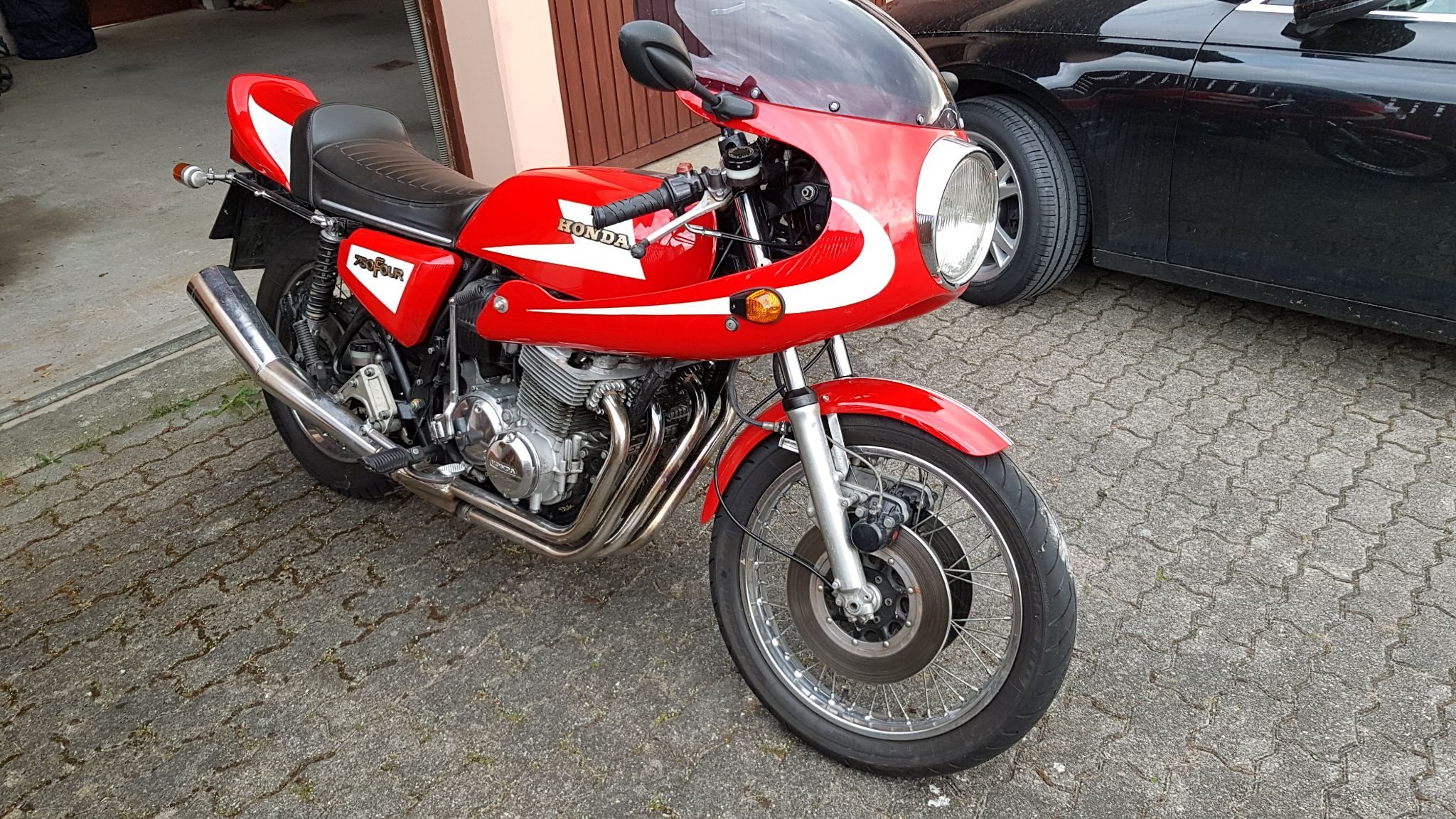 Sehr schöne Honda 750 F1, nicht mehr Orginal, mit Habermann Verkleidung Doppelscheiben vorne und einfache Scheibe hinten, Koni-Stoßdämpfer