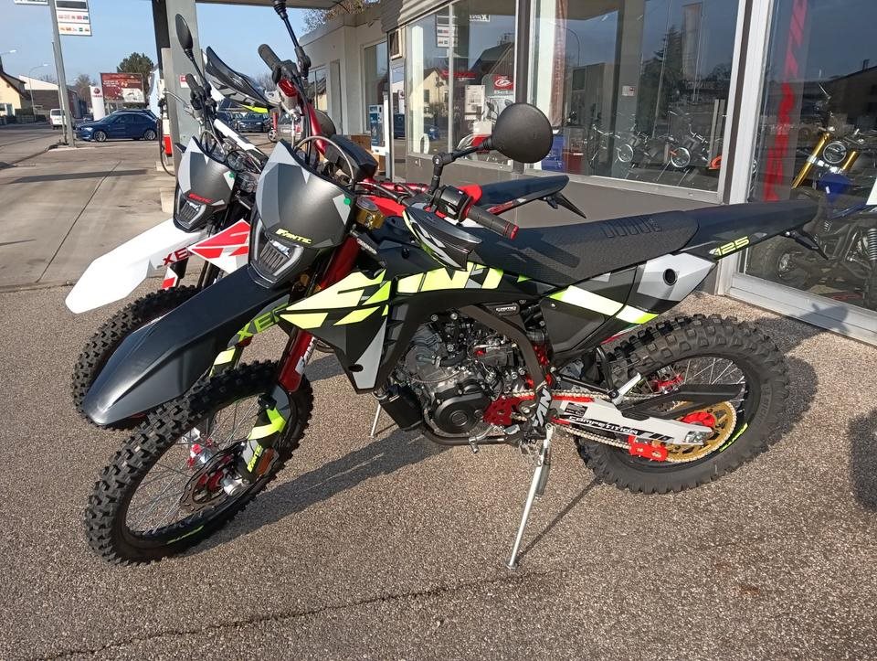 Chassis - Der CrMo-Stahlrahmen der Fantic XEF 125 wurde durch die Positionierung von neuen Verstarkungen zugunsten der Steifigkeit optimiert. Die neue XEF 125 Enduro ist mit einer Fantic Upside-Down-Gabel mit 41 mm Durchmesser, Aluminium Gabelbrucken, einer Aluminiumschwinge mit variablem Querschnitt und einem abnehmbaren Hilfsrahmen ausgestattet. Die Enduro-Reifen 90/90x21 - 120/90x18 sind auf Aluminium-Felgen montiert. Zusatzlich gibt es leistungsstarke und abgestimmte 260-mm-Wellenbremsscheiben vorne und 220-mm-Wellenbremsscheiben hinten mit einem kombinierten Bremssystem.