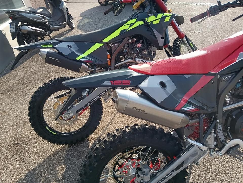Das XEF 125 Enduro Competition ist ein Motorrad fur diejenigen, die auf technischen Offroad-Strecken fahren wollen, jedoch mit ahnlichen Komponenten wie unsere Racing-Modelle. Die "Competition"-Version umfasst eine 41-mm-Fantic Red FRS-Vorderradgabel, ein FSR Hinterrad-Federbein mit hydraulischer Einstellung, eine Aluminium-Schwinge, einen eloxierten Schutz fur den hinteren Hauptbremszylinder, CNC-gefraste Gabelbrucken, eine Rennbremsanlage mit einstellbarer Griffweite, einen schwarz eloxierten Schalldampfer, Handschutzer und einer leichten Ergal-Gabelbrucke.