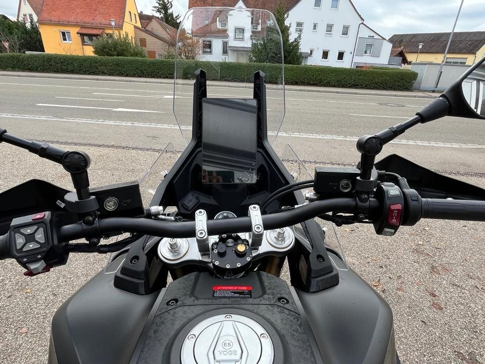 Mit verstellbarem Fahrwerk von KYB, ABS und Traktionskontrolle (beides abschaltbar), beheizbarem Sitz und Griffen sowie 21/18-Zoll-Speichenradern mit Pirelli-Bereifung ist sie fur jedes Abenteuer gewappnet. Die angenehme Sitzhohe von 860 Millimetern und ein durchdachtes Ergonomiekonzept sorgen dabei fur volle Kontrolle im Stehen wie im Sitzen.