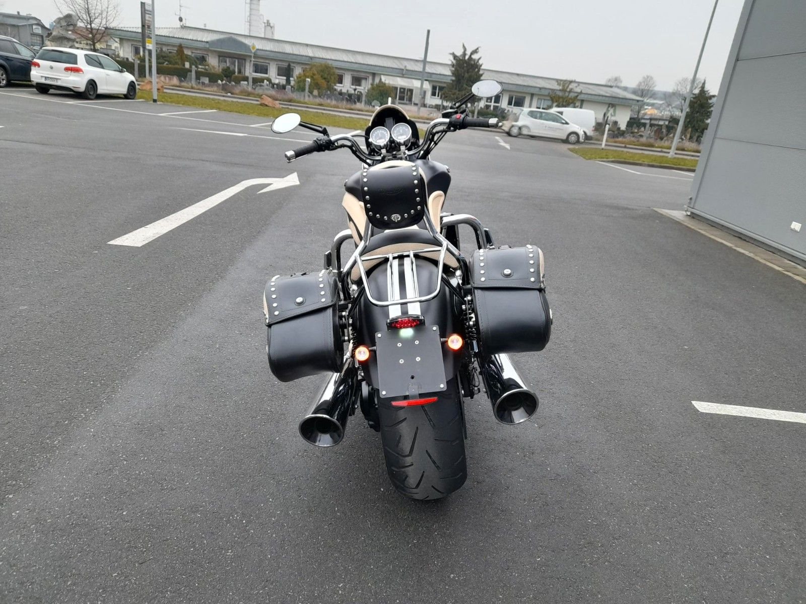 Hepco Becker Ledertaschen Ivory, Heizgriffe, Flyscreen, kurzer Kennzeichenhalter mit LED Rücklicht und LED Blinker, Fahrer Sissybar mit Gepäckbrücke und Ledertasche, Sturzbügel mit Ruherasten, Carbon Kühlerschutz, Carbon Gabelprotektoren, Carbon Rahmenschützer, Carbon Seitendeckel, Spiegel, Stahlflex Bremsleitungen, LED Scheinwerfer, vorverlegte Fussrasten, Offener Auspuff (Original dabei), Leder Design