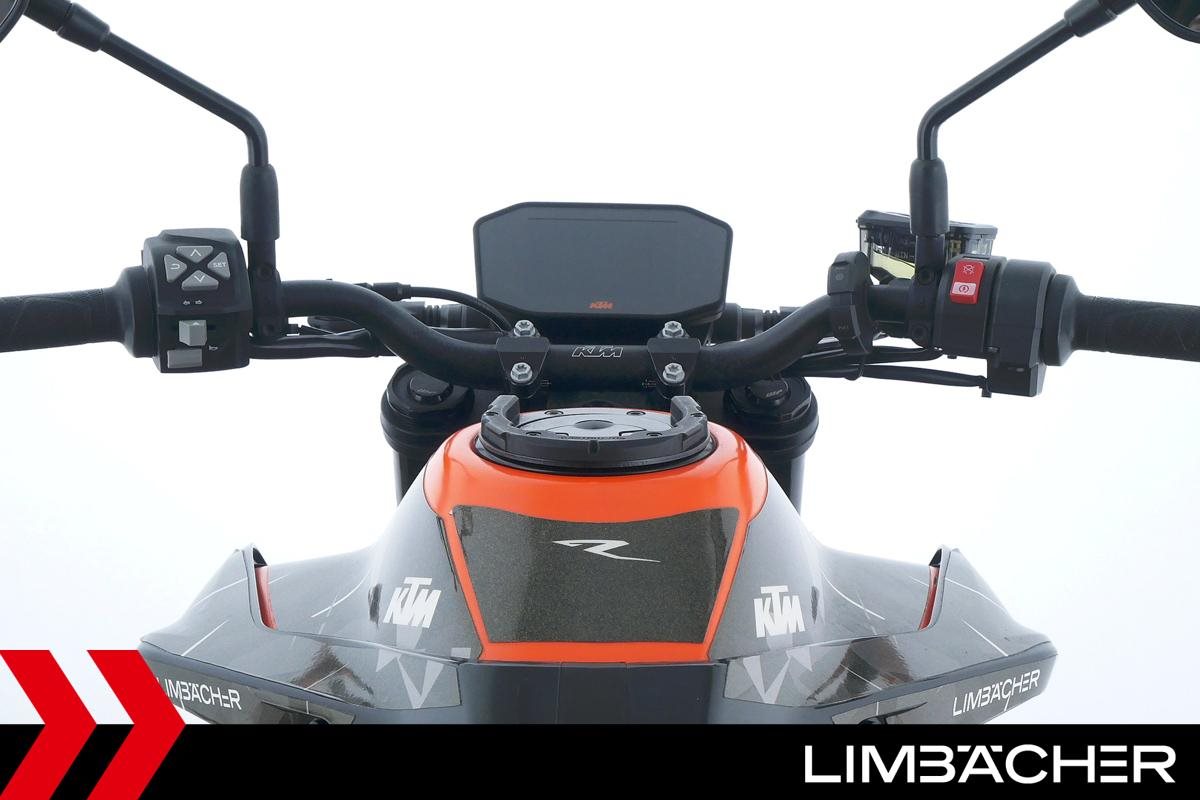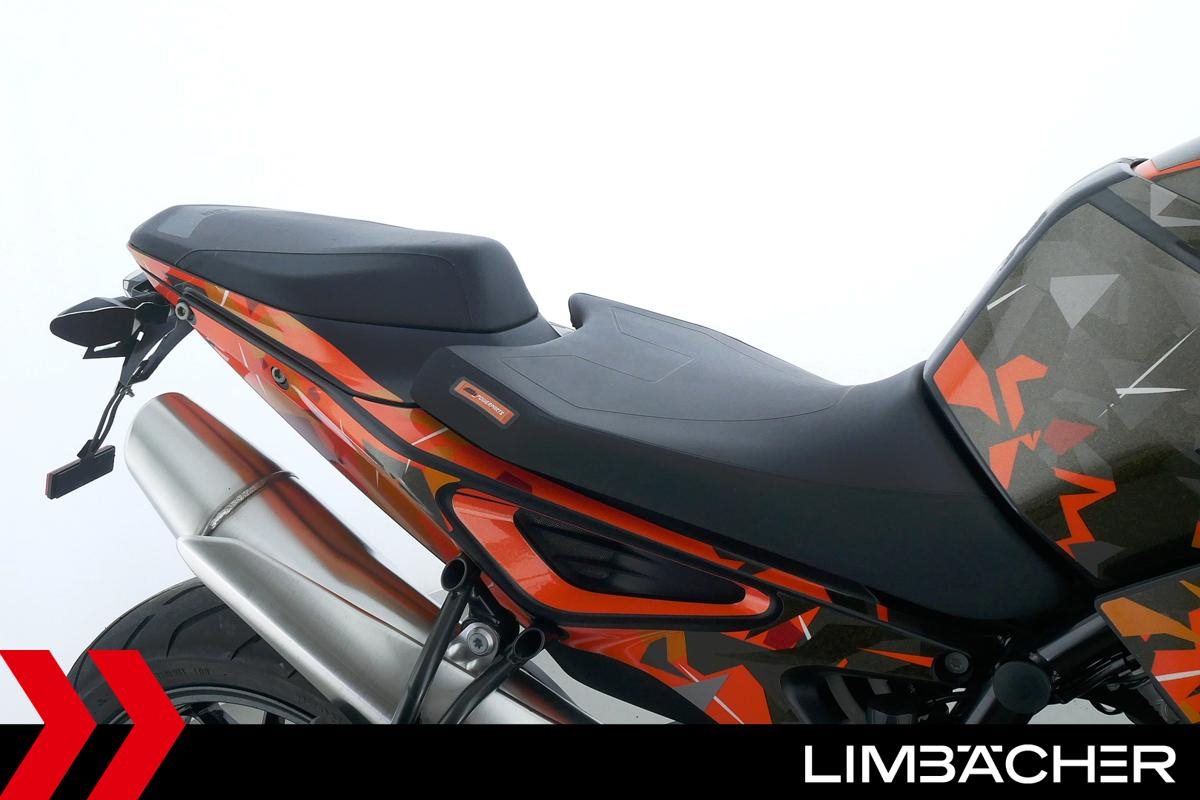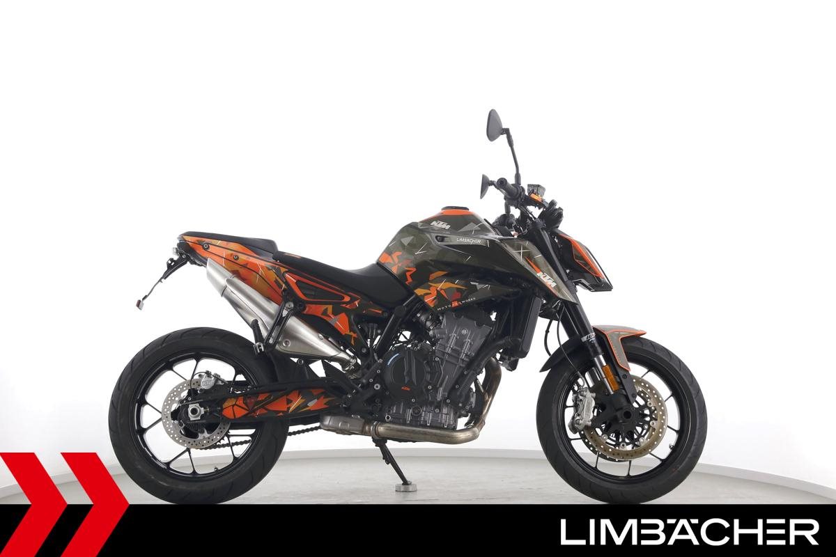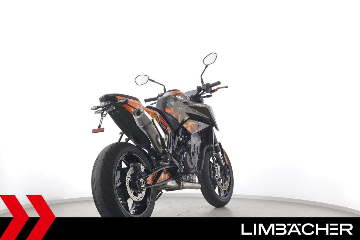 Eine scheckheftgepflegte KTM 890 Duke aus zweiter Hand in gepflegtem Zustand u.a. mit kurzem Kennzeichenhalter sowie einer Powerparts-Sitzbank.