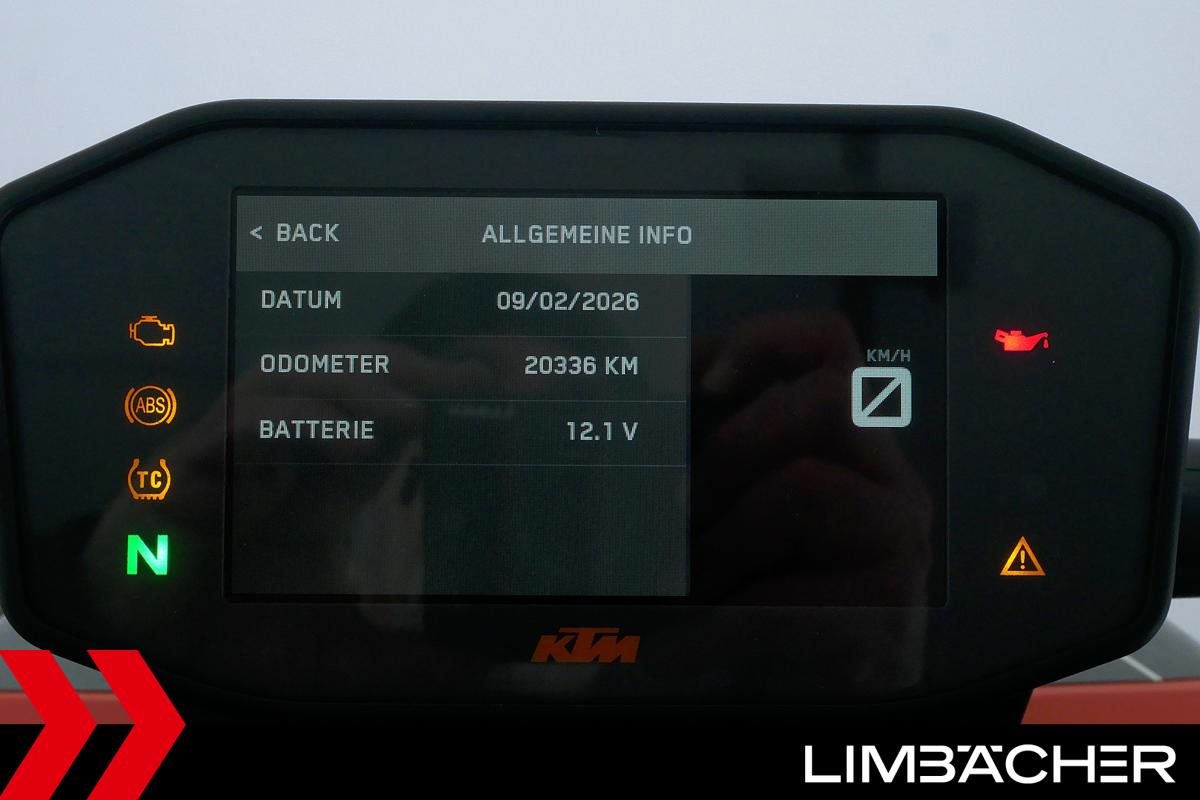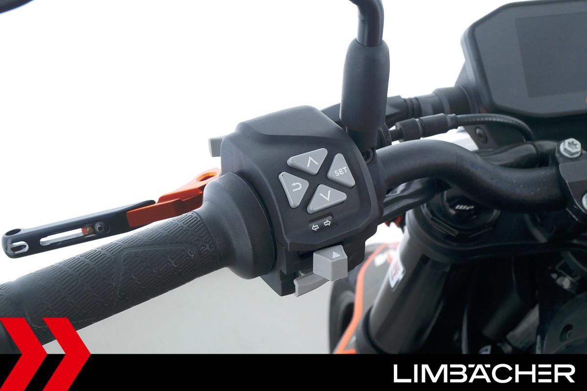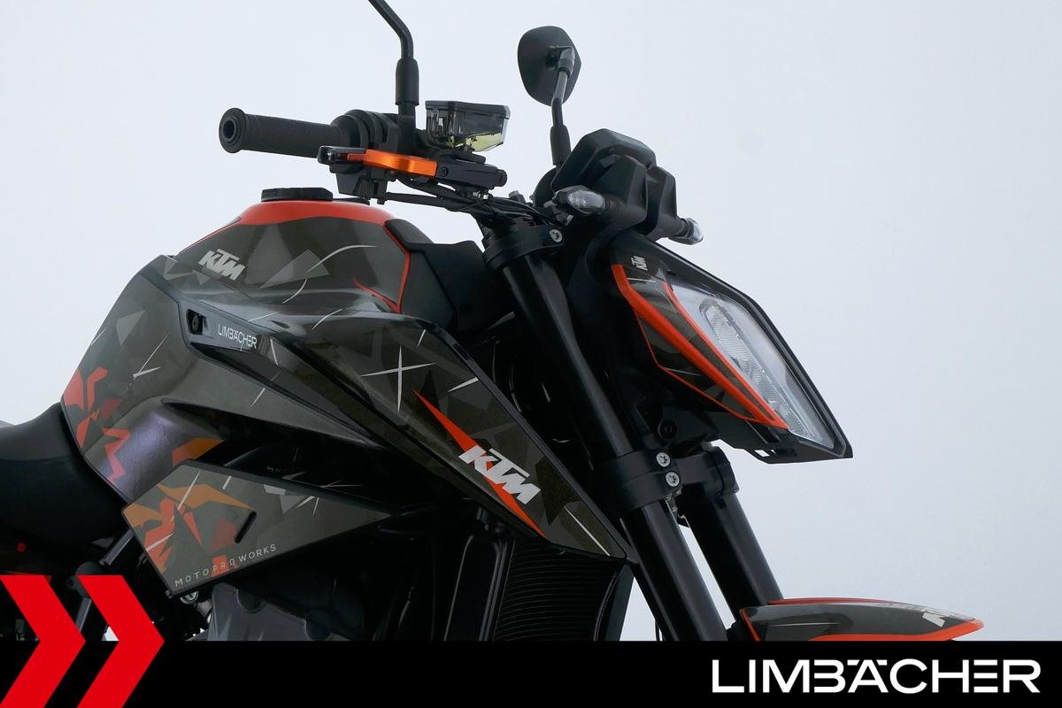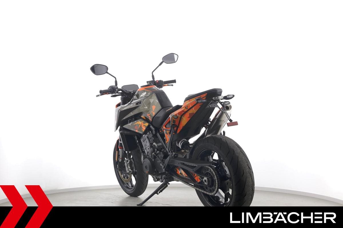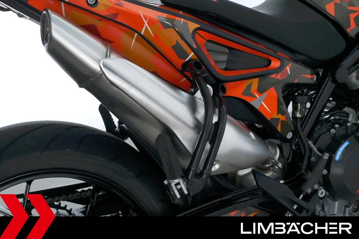 Eine scheckheftgepflegte KTM 890 Duke aus zweiter Hand in gepflegtem Zustand u.a. mit kurzem Kennzeichenhalter sowie einer Powerparts-Sitzbank.