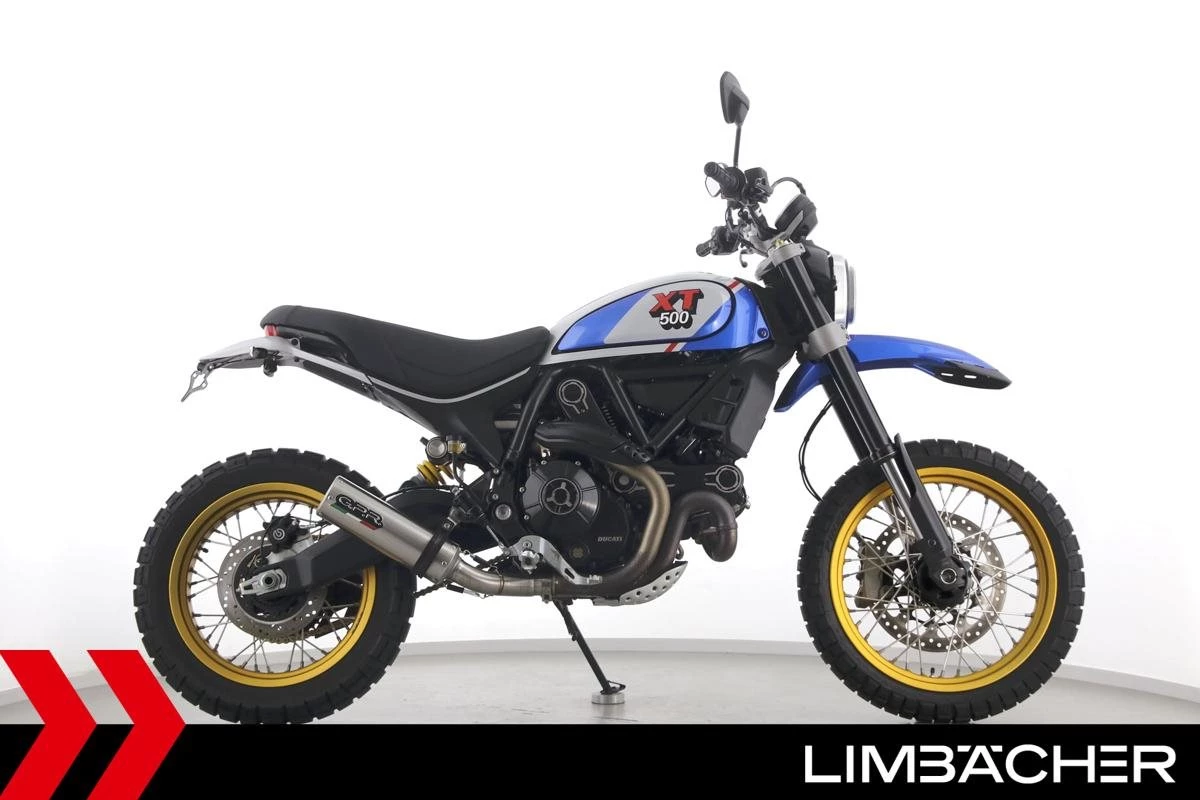 Eine Ducati Scrambler Desert Sled aus zweiter Hand in sehr gepflegtem Zustand u.a. mit G.P.R.-Endschalldämpfer sowie kurzem Kennzeichenhalter.