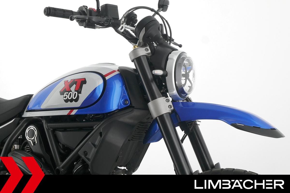 Eine Ducati Scrambler Desert Sled aus zweiter Hand in sehr gepflegtem Zustand u.a. mit G.P.R.-Endschalldämpfer sowie kurzem Kennzeichenhalter.