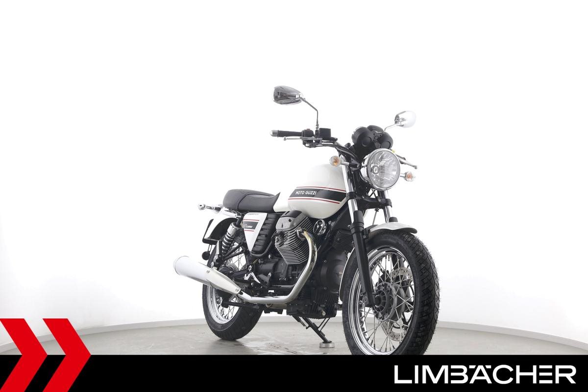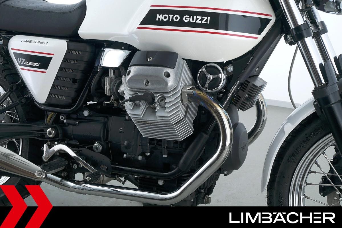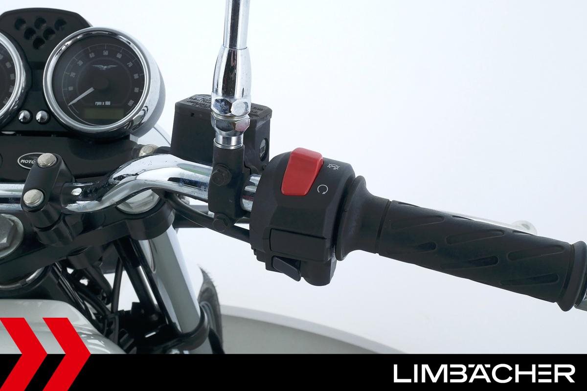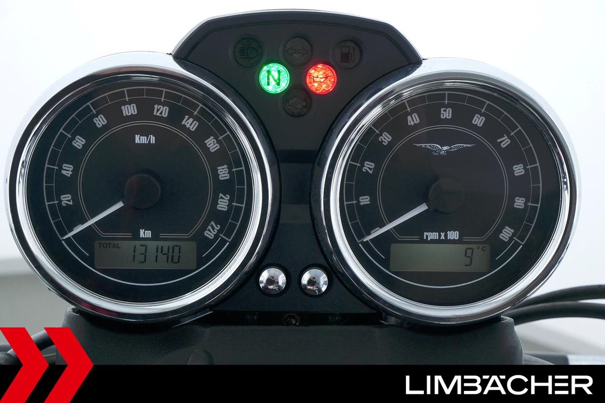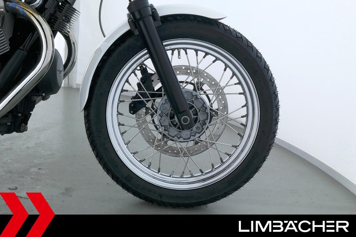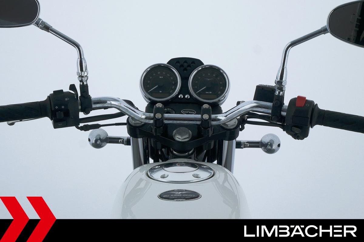 Eine scheckheftgepflegte Moto Guzzi V7 Classic in gepflegtem Zustand u.a. mit Originalausstattung sowie Chromspeichenrädern.