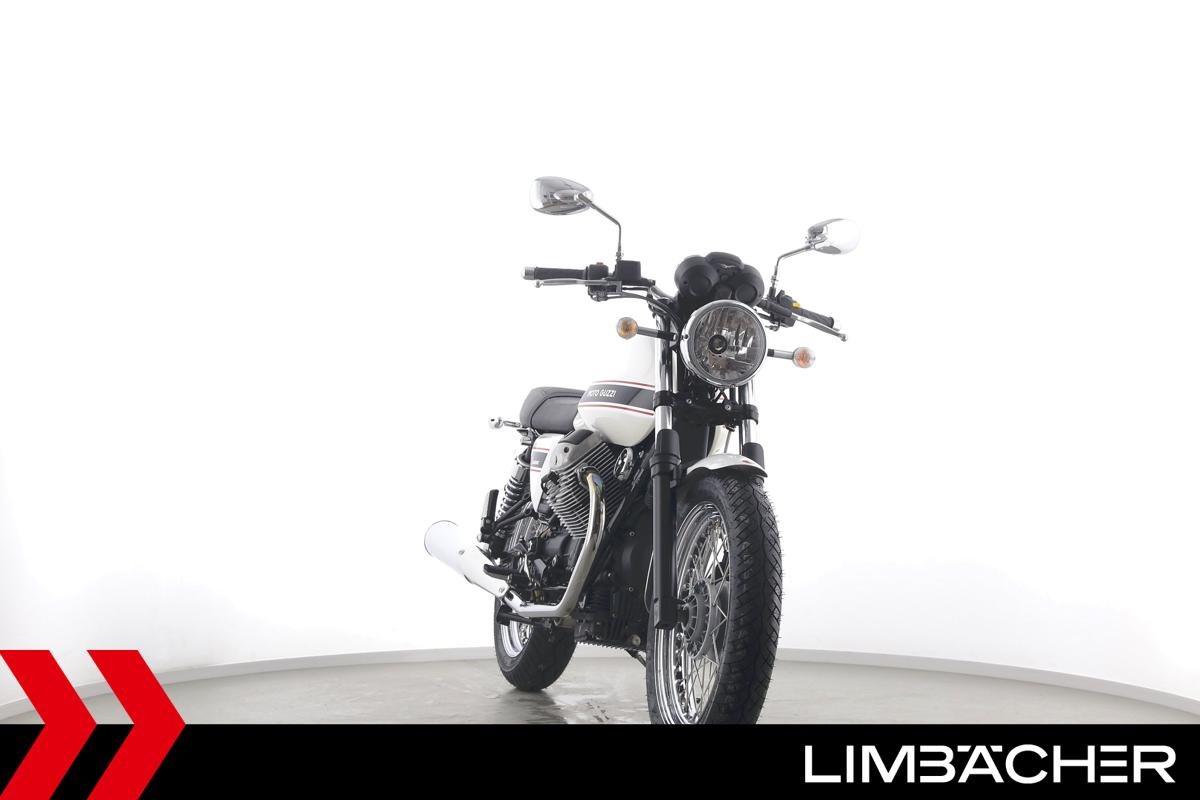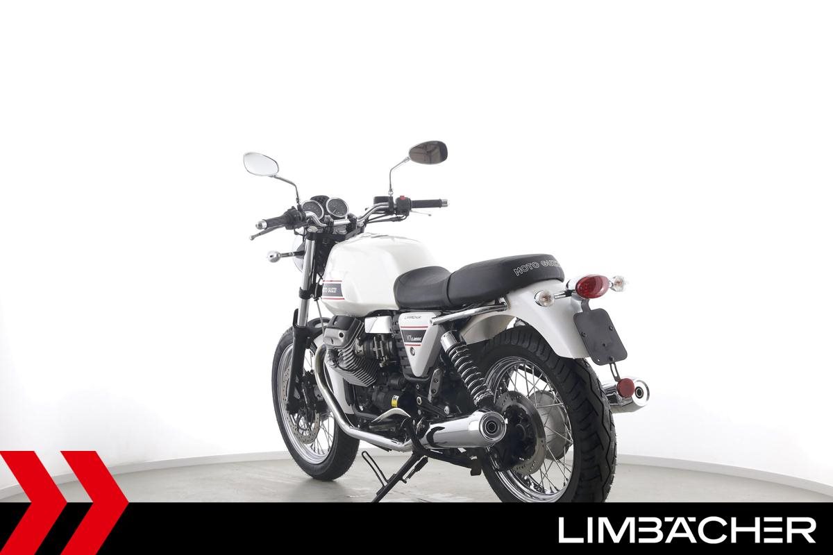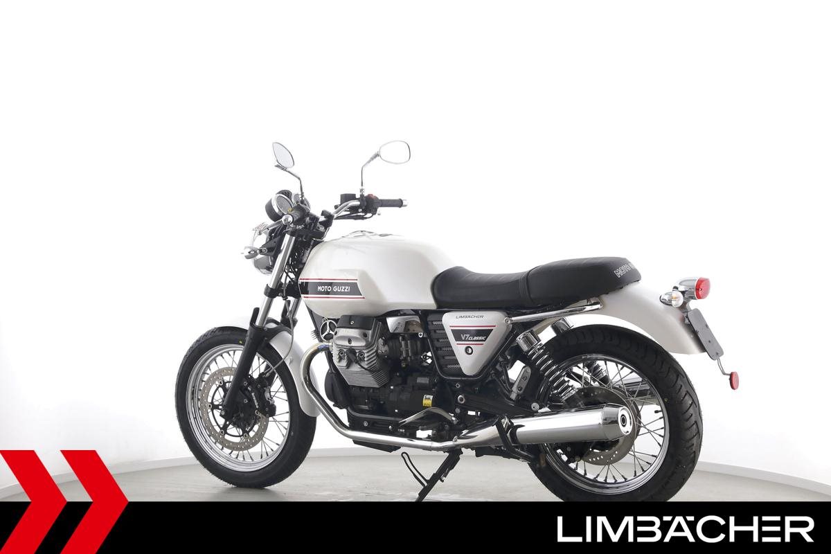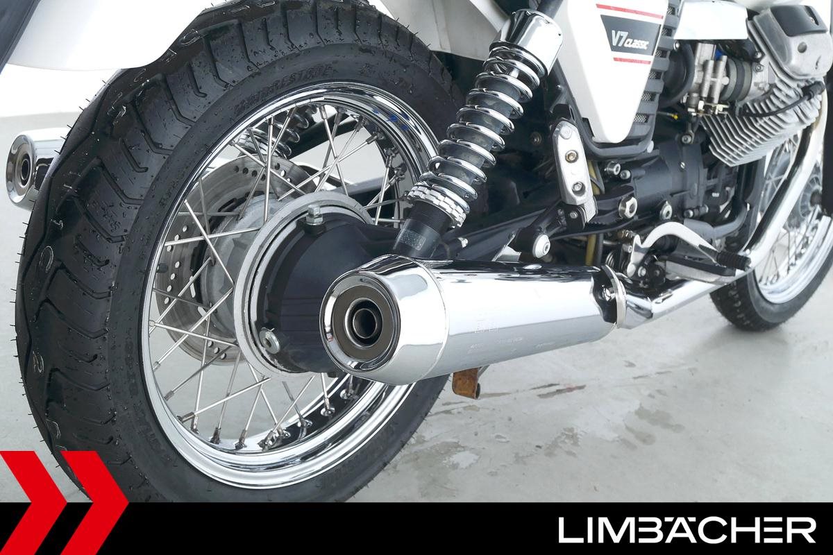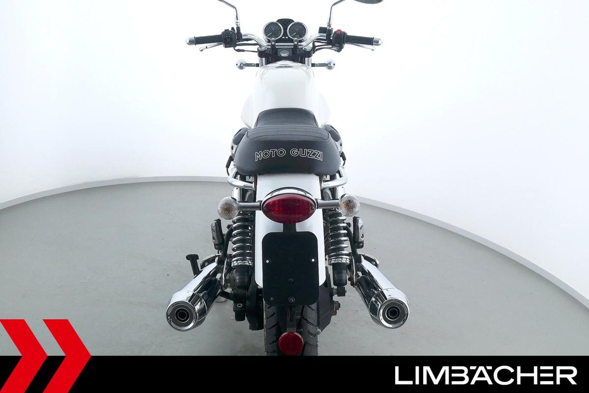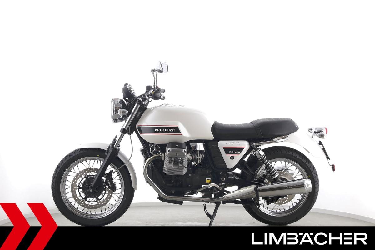 Eine scheckheftgepflegte Moto Guzzi V7 Classic in gepflegtem Zustand u.a. mit Originalausstattung sowie Chromspeichenrädern.