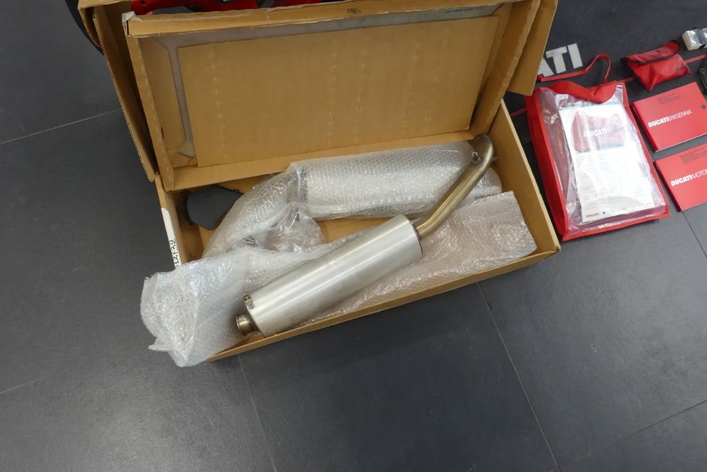 Alle Originalteile dabei, ebenso die damalige Serienausstattung wie Hinterradständer und Abdeckplane. Natürlich auch die Aluminium Schalldämpfer mit entsprechendem Eprom. Erstbesitz, alle Unterlagen vorhanden.
