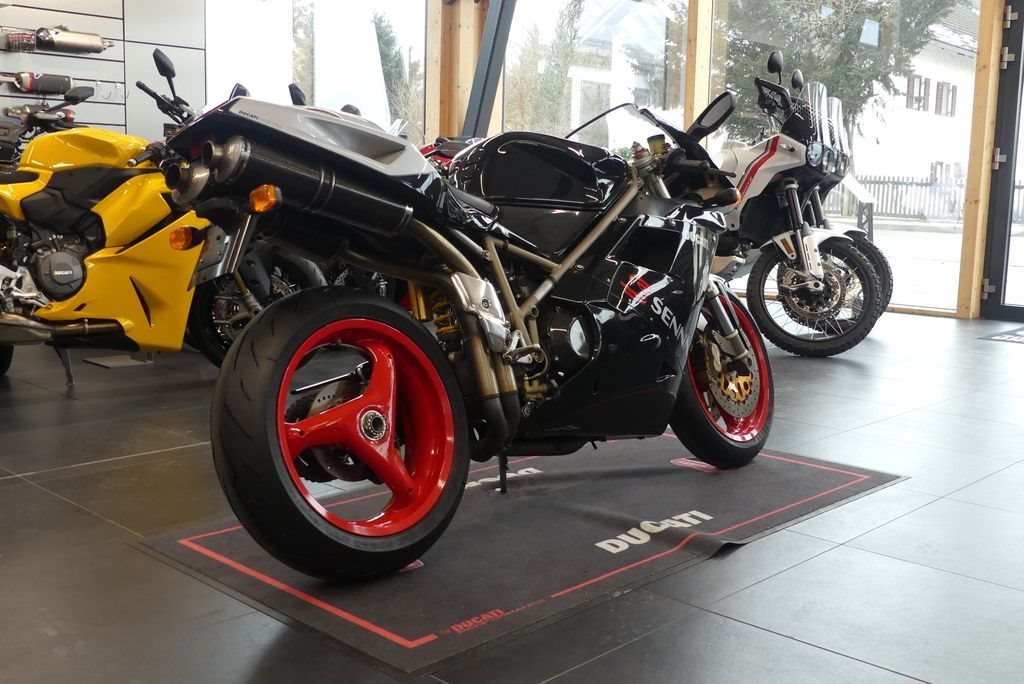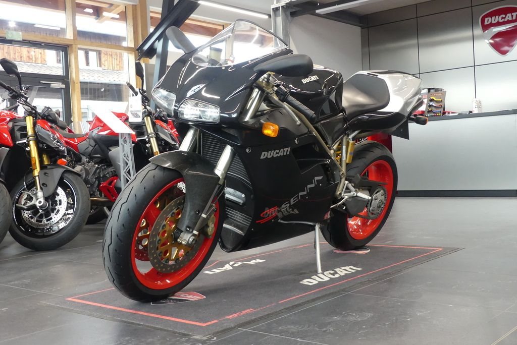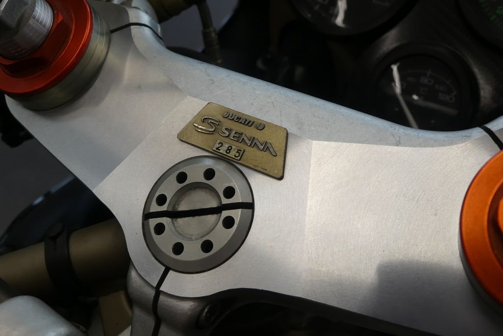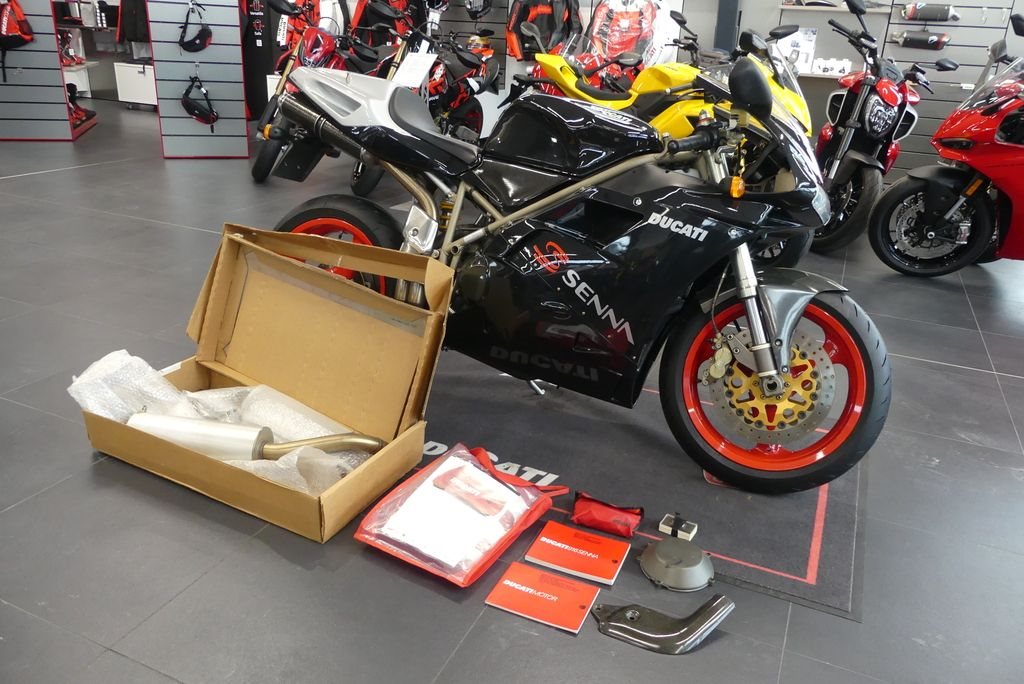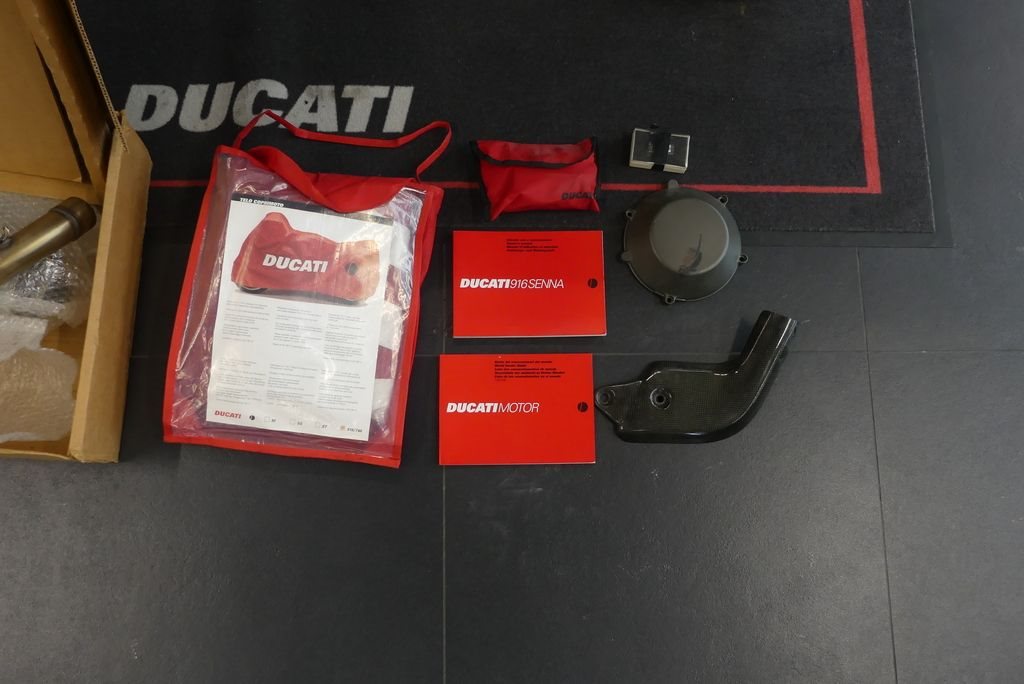 Sehr schöne Ducati 916 Senna III. Originalzustand mit Ausnahme des Startnummernfeldes am Heck. Dieses wurde nachträglich fachgerecht lackiert.
