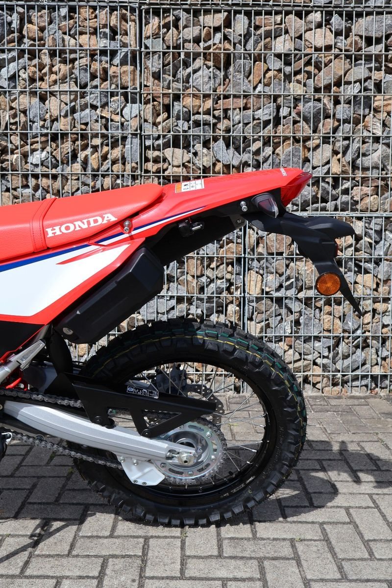 Die CRF300L ist das ultimative Leichtgewicht unter den geländegängigen Motorrädern mit Straßenzulassung. Die Merkmale, die sie so gut im Gelände machen - schlanke Proportionen, dynamische Gasannahme, agile Lenkung und das komfortable Fahrwerk - machen sie auch perfekt für die Stadt. Die überragende Allround-Performance und das agile Handling bringen Schwung in den Alltag. Die CRF300 Rally ist genau das Richtige für abenteuerlustige Fahrer, die neben Offroad-Performance auch Langstreckentauglichkeit und Komfort zu schätzen wissen.