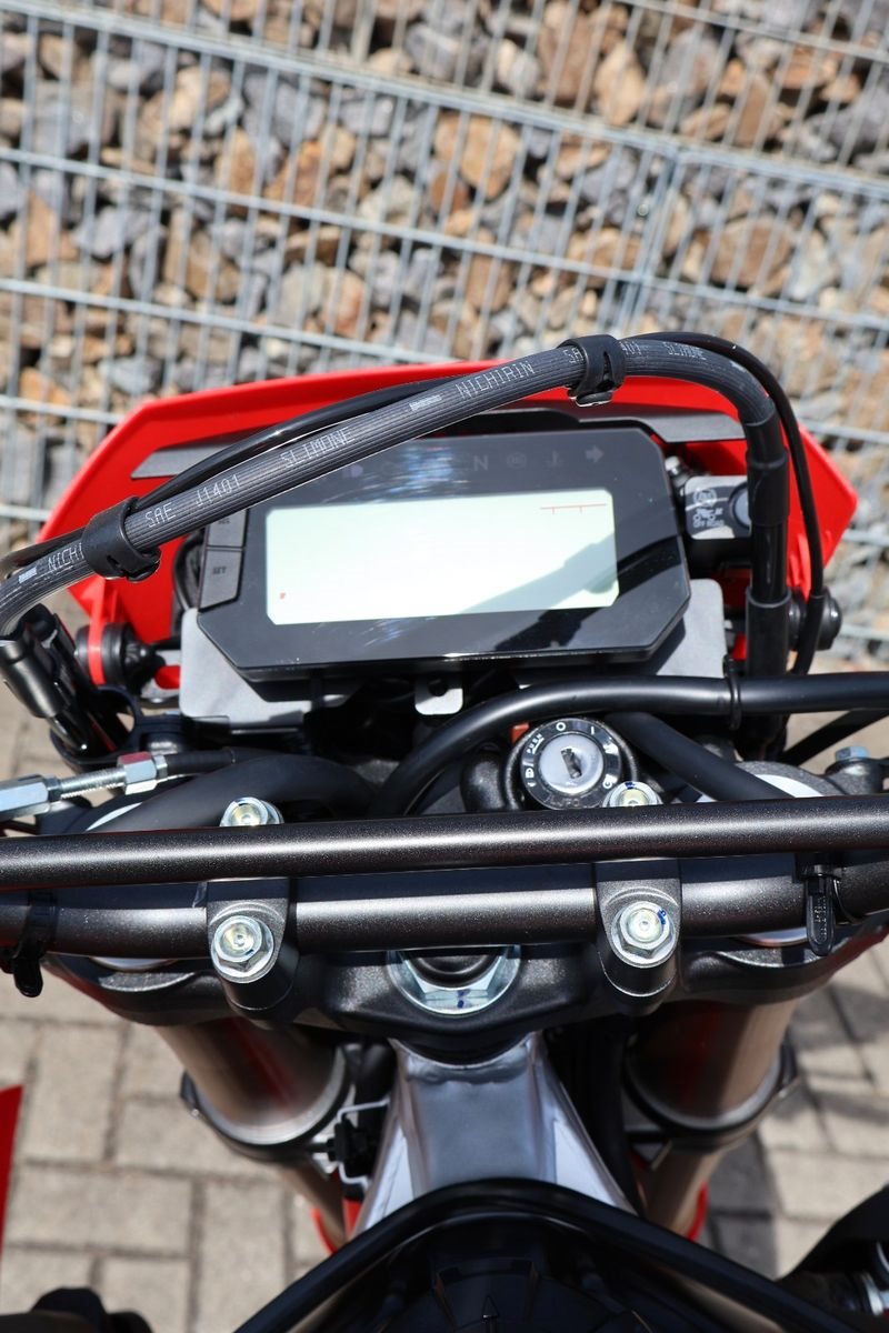 Der Einzylindermotor liefert unmittelbar knackige 20,1 kW (27,3 PS) bei 8.500 U/min und ein Drehmoment von 26,6 Nm bei 6.500 U/min. Die Assist-/Slipper-Kupplung ist noch leichter zu bedienen und vereinfacht damit das Handling in der Stadt und im Gelände. Die überarbeitete Auspuffanlage zeichnet sich durch ein besseres Wärmemanagement aus. Der neue Kühlergrill optimiert den Ansaugluftstrom und die neue Seitenabdeckung lenkt den Abgasstrom vom Fahrer weg.