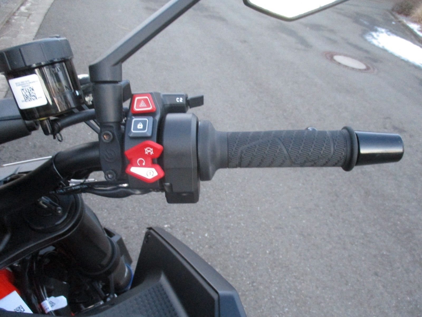 - Modernste Elektronik: Ein neues 8-Zoll-TFT-Display (optional), verschiedene Fahrmodi (Rain, Street, Sport und optionale Performance-/Track-Modes) sowie Kurven-ABS und schräglagenabhängige Traktionskontrolle.