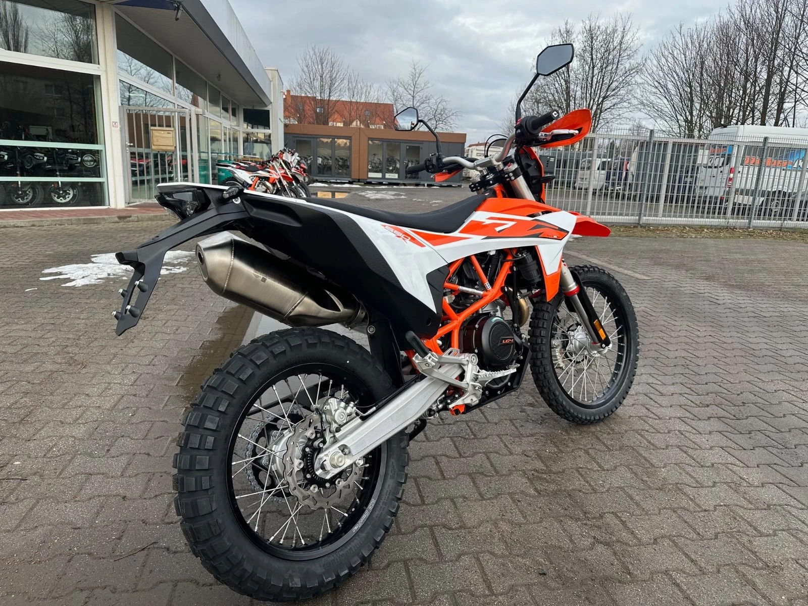Deine KTM 690 ENDURO R brummt mit steigender Drehzahl, während die Vorstadt langsam hinter dir verschwindet. Vorne leuchtet ein heller LED-Strahl den Weg in den frühen Morgennebel, während du auf die nächste Schotterpiste zurast. Im nächsten Moment rast du in die Wildnis hinaus und wechselst mühelos von Asphalt zu Schotter, ohne ins Schwitzen zu kommen. Das ist der Reiz der KTM 690 ENDURO R - grenzenlose Vielseitigkeit.