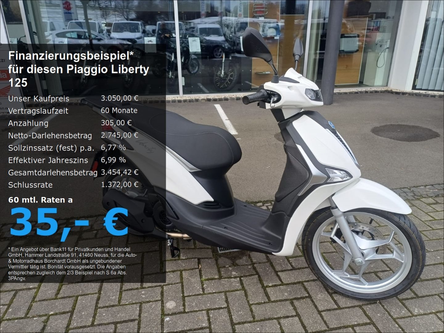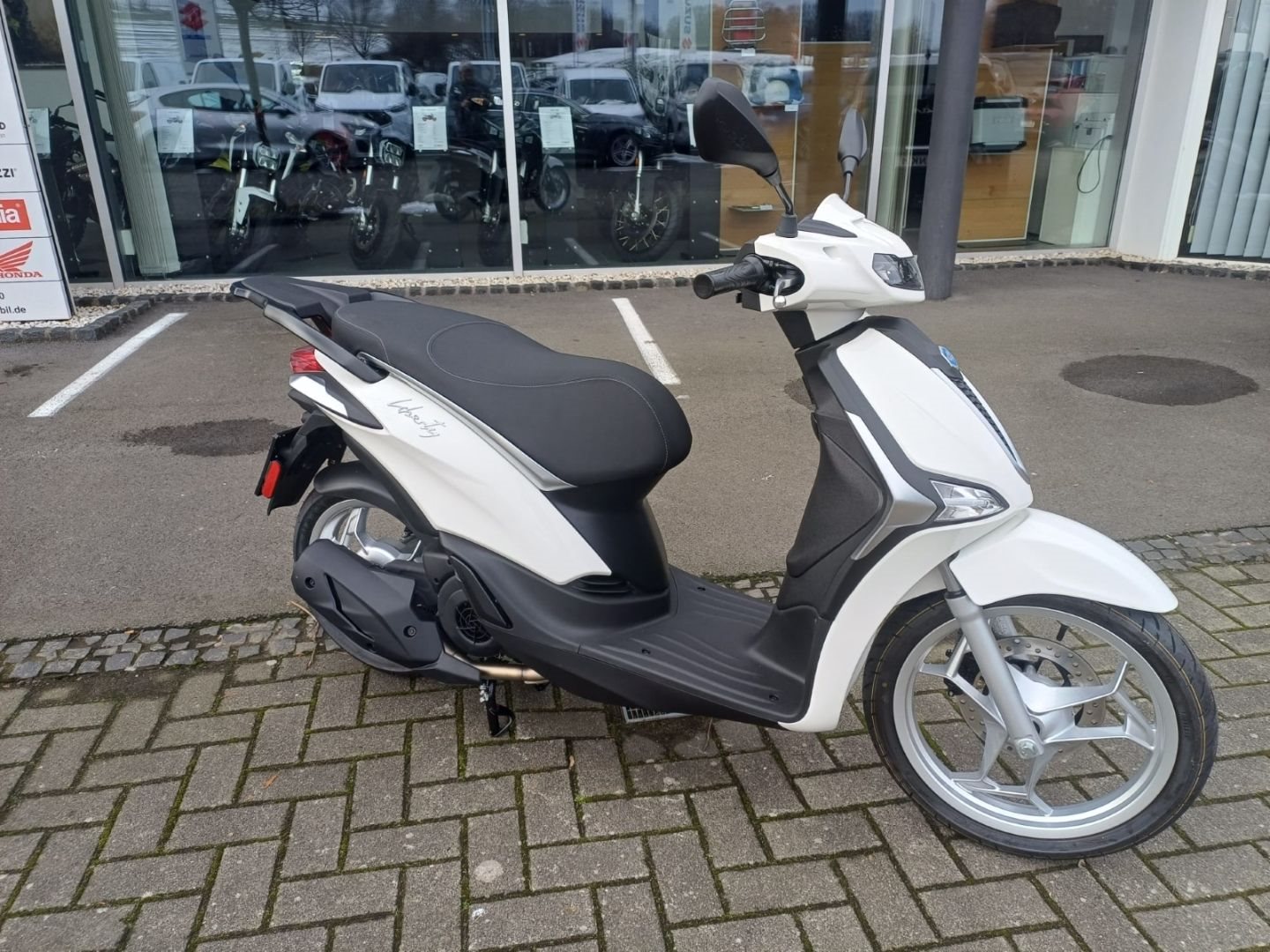 Freiheit auf zwei RädernDer Piaggio Liberty ist das ideale Fahrzeug für schnelle und sichere Fahrten in der Stadt. Der hochfeste Stahlrahmen, das große Vorderrad und die optimierte Ergonomie sorgen für ein stets komfortables und sicheres Fahrerlebnis - perfekt für alle, die eine verlässliche Mobilitätslösung für den Alltag suchen. Der Einzylinder-Viertaktmotor mit i-get Technologie, Euro-5+ Norm, Luftkühlung und optimierter elektronischer Einspritzung ermöglicht eine sanfte Fahrt und niedrigen Verbrauch von nur 2,5 Litern auf 100 km nach WMTC. Ein agiler und sicherer Roller mit großen Rädern, bereit für die Herausforderungen des Stadtverkehrs.