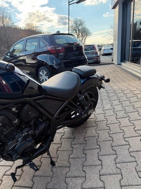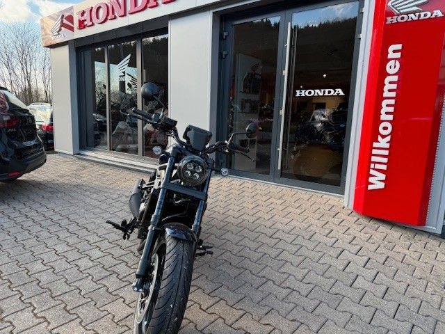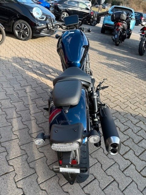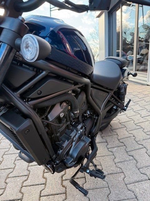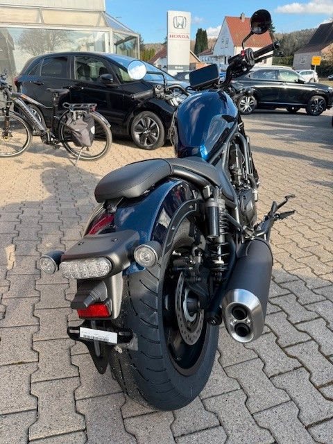 Steht ein Bike-Wechsel an? Dann ist jetzt der Moment für etwas völlig anderes: die CMX1100 Rebel. Ein minimalistisches Motorrad, das an die legendäre "Bobber"-Silhouette mit breiten Reifen erinnert, jedoch rundum durch moderne Details überzeugt. Ein echter Hingucker für entspanntes Fahren auf breiten Boulevards. Hinter dem Design steckt jedoch viel mehr als nur ein perfekter Look.Der drehmomentstarke, charakteristische Parallel-Twin überzeugt mit Throttle-By-Wire- Management, Honda Selectable Torque Control (HSTC) und Wheelie-Control sowie vier vor- programmierten Fahrmodi: STANDARD bedeutet entspannte Leistungsentfaltung bei niedri- gen und ordentlich Power mit steigenden Drehzahlen. RAIN reduziert die Leistung des Motors und der Motorbremse bei gleichzeitiger Aktivierung der höchsten Stufe der Wheelie-Control und der HSTC für sicheres, entspanntes Fahren. SPORT fasziniert mit dynamischer Leis- tungsentfaltung und geringen Eingriffen von Wheelie-Control und HSTC. Der Tempomat ist serienmäßig, das einzigartige Sechsgang-Doppelkupplungsgetriebe optional erhältlich. Eine zweite Person findet jederzeit bequem Platz und Halt, denn das hintere Sitzpolster lässt sich schnell und einfach montieren. Unter dem Sitz befindet sich ein praktisches 3-Liter-Staufach inklusive USB-Ladeanschluss.Dieser coole Cruiser liebt Kurven. Die Cartridge-Vorderradgabel verfügt über geschwärzte Federgabeln, die perfekt zu den 43-mm-Holmen mit Oxid-Titanbeschichtung in Dark Navy passen. Doppelte Stoßdämpfer hinten mit Federvorspannungs-Einsteller mit Druckaus- gleichsbehältern bewirken gleichmäßige Dämpfung. Die Bremsleistung wird durch die Vorderradbremse mit Monoblock-Vierkolben-Bremssattel erzielt, die eine schwimmend gela- gerte 330-mm-Bremsscheibe greifen. Das Hinterrad wird über eine 256-mm-Einscheiben- bremse mit Einkolben-Bremssattel gebremst. Beide Bremsen werden vom ABS gesteuert. Die Aluminiumgussfelgen mit sportlichen Y-Speichen und breiten Reifen ausgestattet (180/65 B-16 hinten und 130/70 B-18 vorn).Die brandneue CMX1100T Rebel ist ein umfassend ausgestatteter Luxustourer, der mit uner- reichtem Komfort überzeugt. Die Koffer sind perfekt verarbeitet, elegant und praktisch. Die große Frontverkleidung sowie das Windschild sorgen für noch mehr Schutz vor Wind und Wetter.