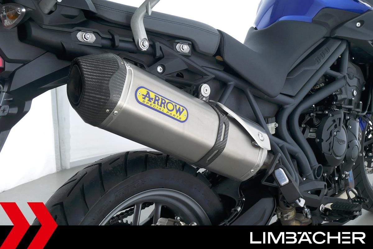 Eine scheckheftgepflegte Triumph Tiger 800 aus zweiter Hand in gepflegtem Zustand u.a. mit Arrow-Endschalldämpfer sowie Givi-Topcase.