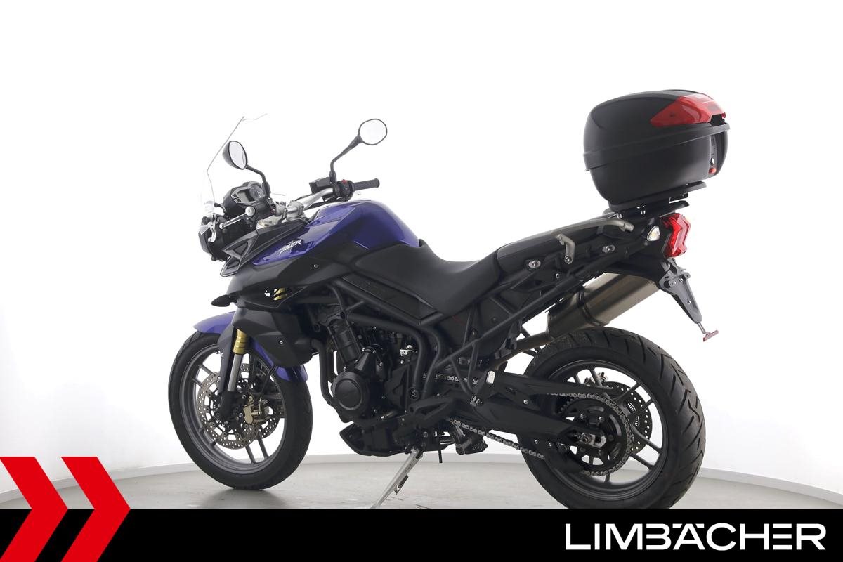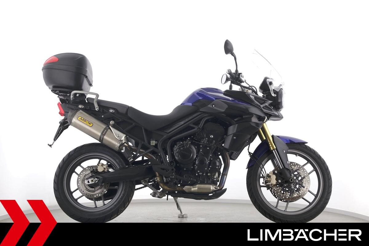 Eine scheckheftgepflegte Triumph Tiger 800 aus zweiter Hand in gepflegtem Zustand u.a. mit Arrow-Endschalldämpfer sowie Givi-Topcase.
