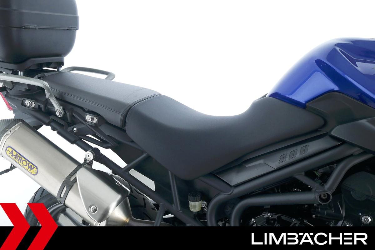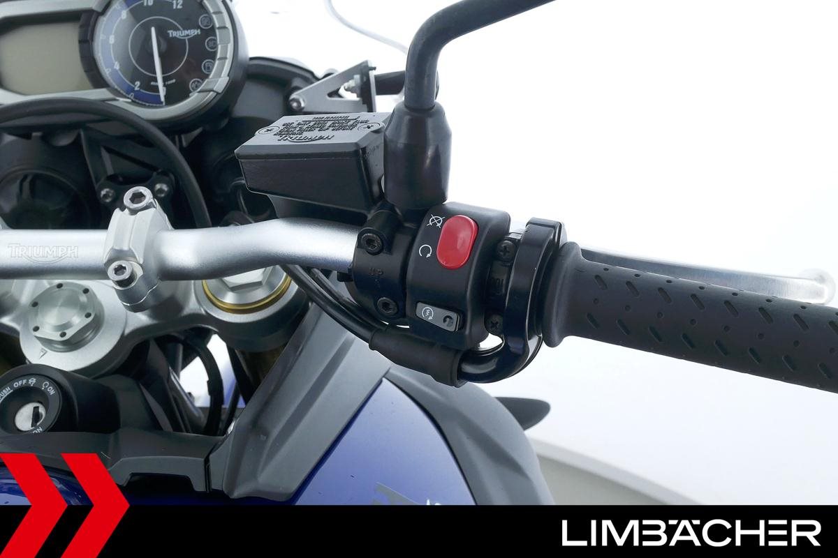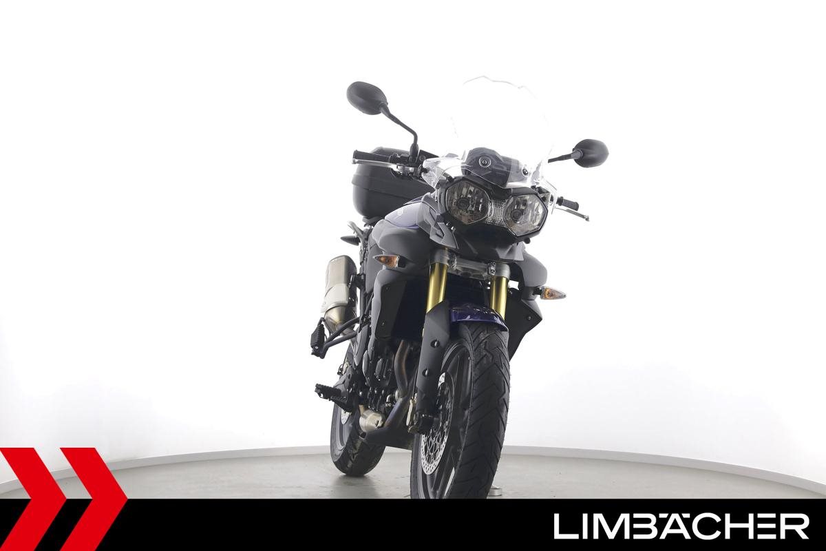 Eine scheckheftgepflegte Triumph Tiger 800 aus zweiter Hand in gepflegtem Zustand u.a. mit Arrow-Endschalldämpfer sowie Givi-Topcase.