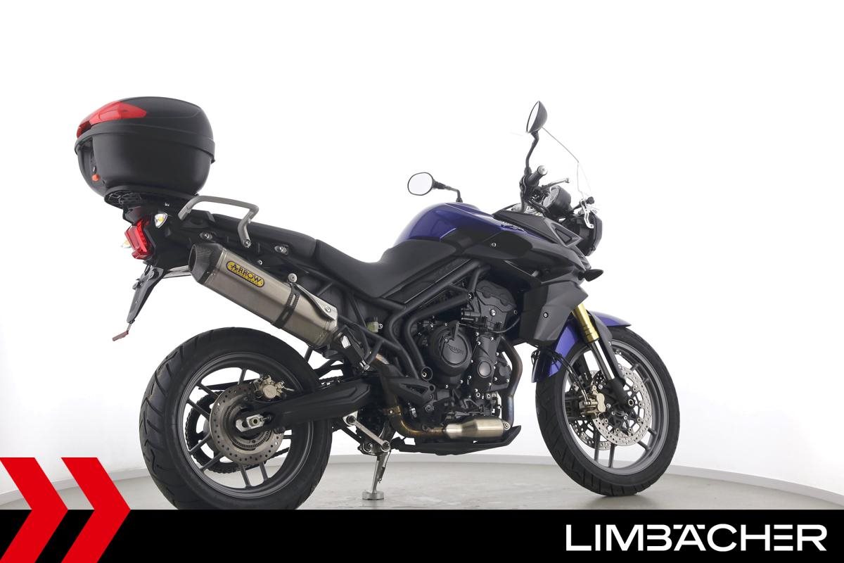 Eine scheckheftgepflegte Triumph Tiger 800 aus zweiter Hand in gepflegtem Zustand u.a. mit Arrow-Endschalldämpfer sowie Givi-Topcase.