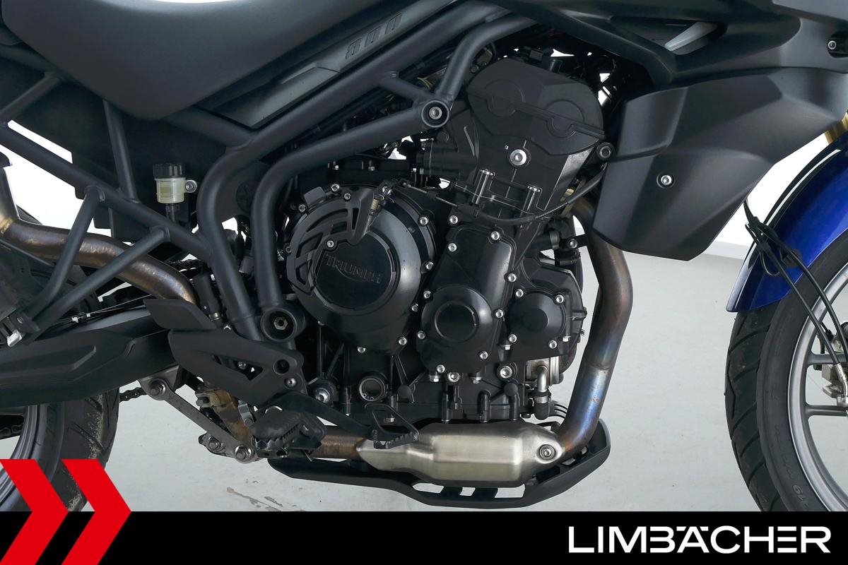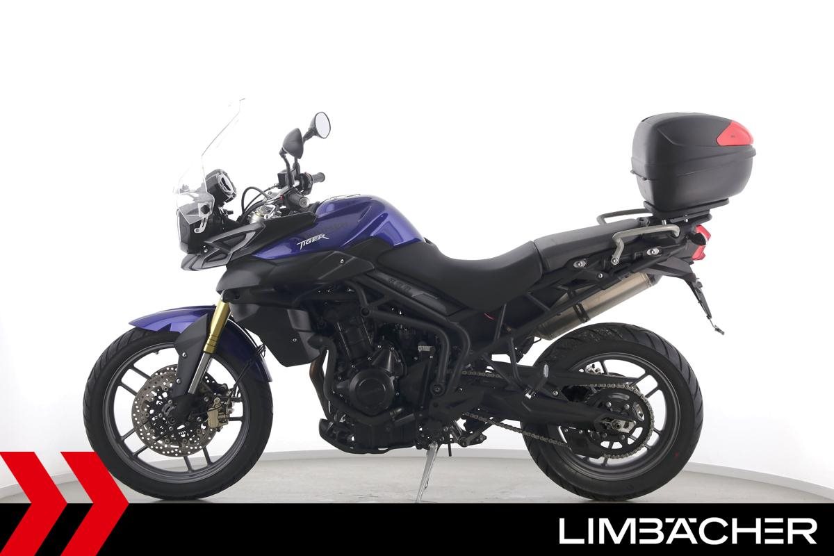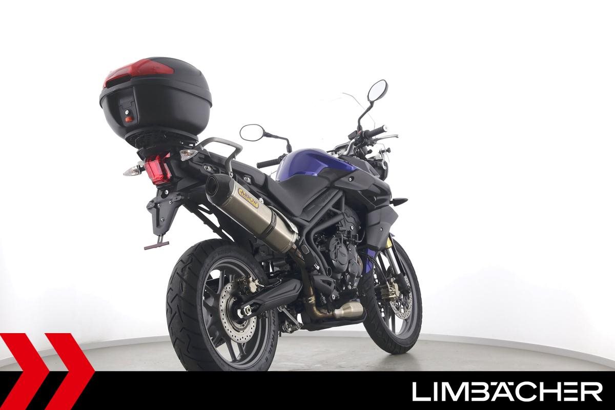 Eine scheckheftgepflegte Triumph Tiger 800 aus zweiter Hand in gepflegtem Zustand u.a. mit Arrow-Endschalldämpfer sowie Givi-Topcase.