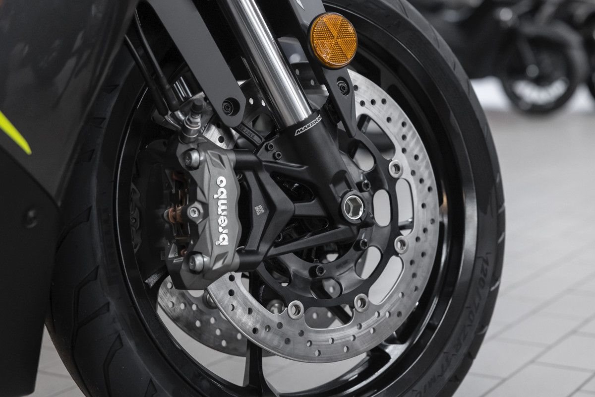 Fahrwerkseitig setzt Benelli auf eine voll einstellbare Marzocchi-Federung sowie leistungsstarke Radial montierte Brembo-Bremsanlagen, die sportliche Performance und Sicherheit vereinen.