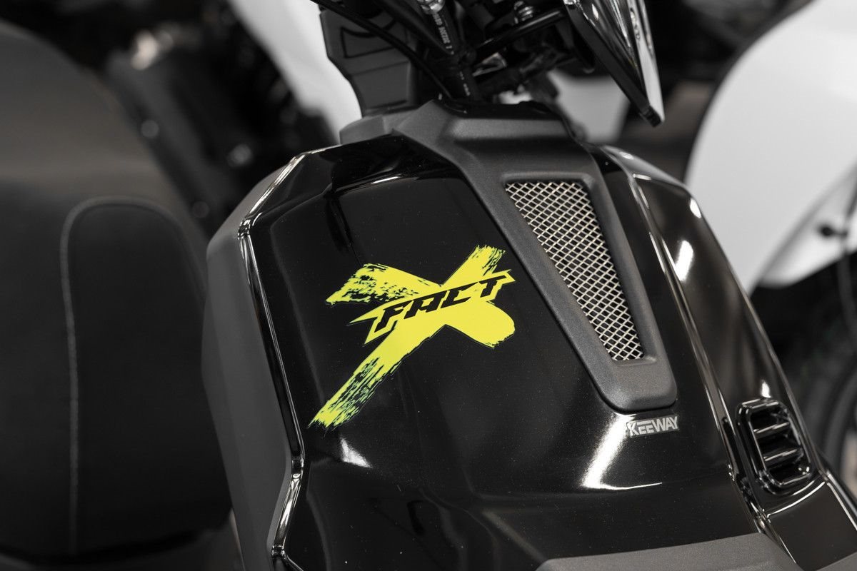 Der Keeway Fact X 125 ist eine mutige Wahl mit unverwechselbaren Grafiken, Farbakzenten und einer robusten Silhouette.
