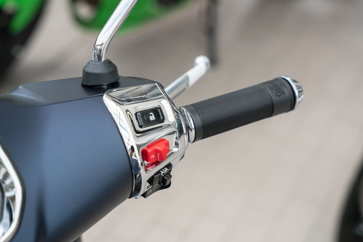 Mit dem Vespa MIA-System können Fahrer Benachrichtigungen und eingehende Anrufe verwalten, Musik abspielen und Anrufe tätigen, auch über Sprachbefehle.