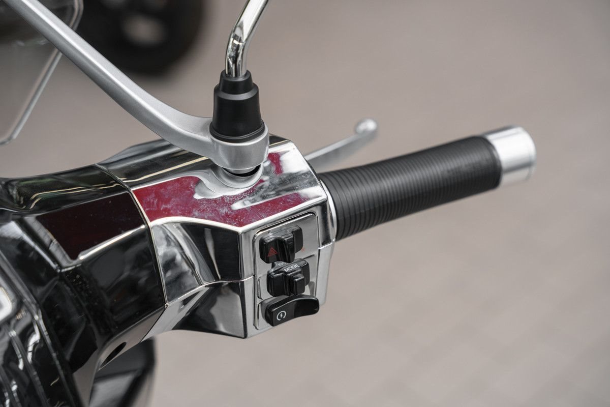 Mit exklusivem Zubehör, einer neu gestalteten Sitzbank und einem kraftvollen 275 cm Motor verkörpert sie urbane Premium-Mobilität mit einem Hauch von Retro-Eleganz.