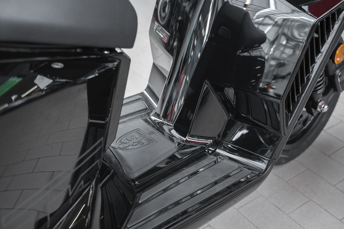 Die sportlich abgestimmte Federung und das Doppelarmsystem garantieren präzises Handling und ein intensives Fahrerlebnis, während die charakteristische LED-Beleuchtung und das markante GP-Farbschema den kompromisslosen Auftritt unterstreichen.