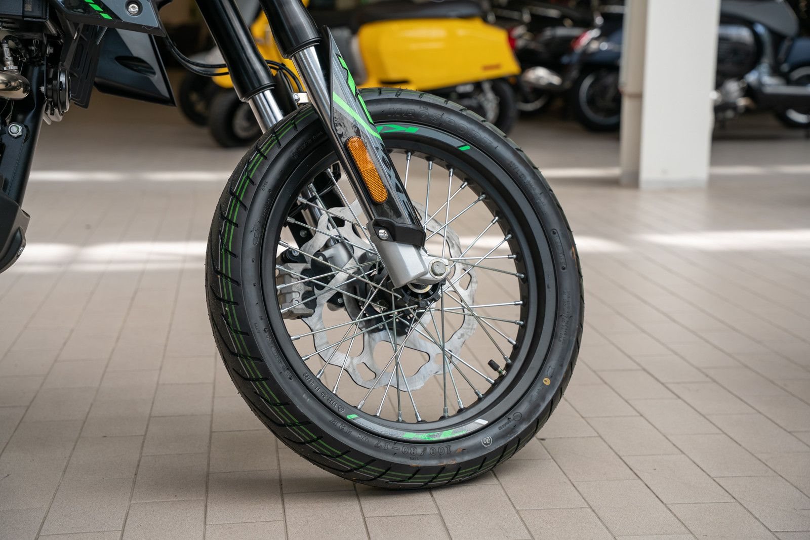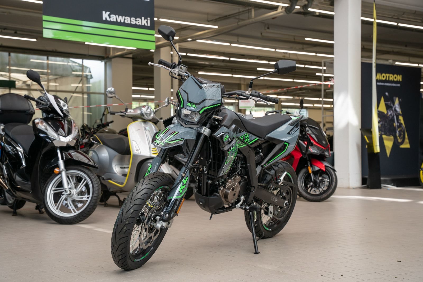 Die Supermoto-Version der KL KXE ist auf jedem Terrain souverän unterwegs und weiß mit extremer Wendigkeit und Stabilität zu überzeugen.