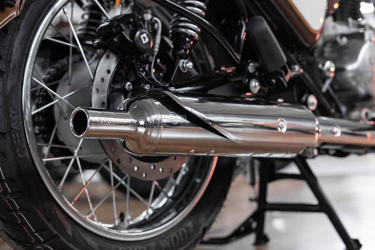 Die geschwungenen Kotflügel und der tropfenförmige Kraftstofftank, die charakteristischen Kassettenscheinwerfer, die einzigartige Lackierung und der unverwechselbare Klang der aus dem Auspuff ertönt harmonieren in sich und machen dieses Meisterwerk zu dem was es ist - eine zeitlose Royal Enfield Classic.