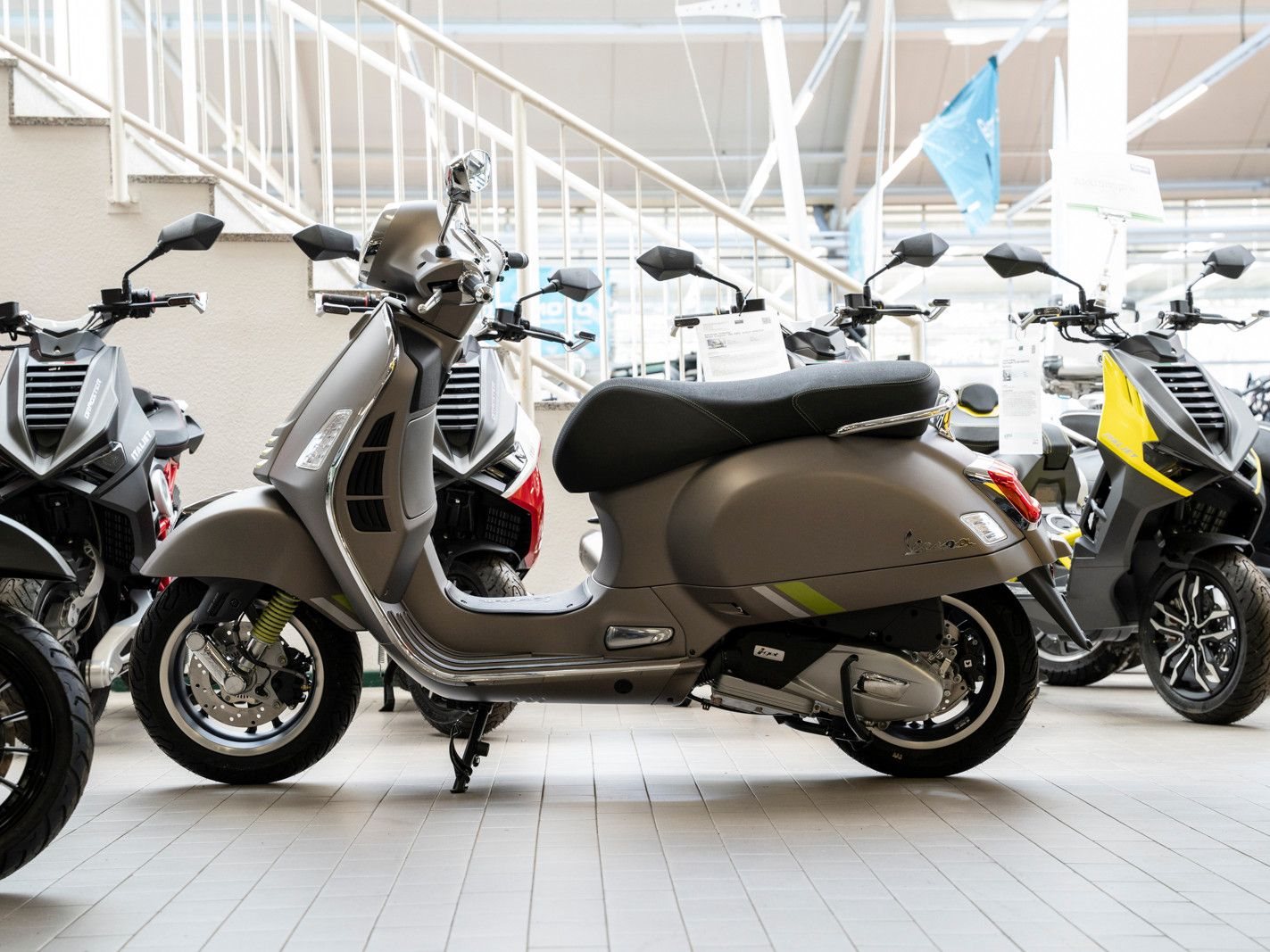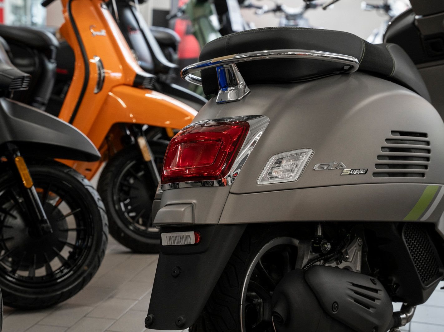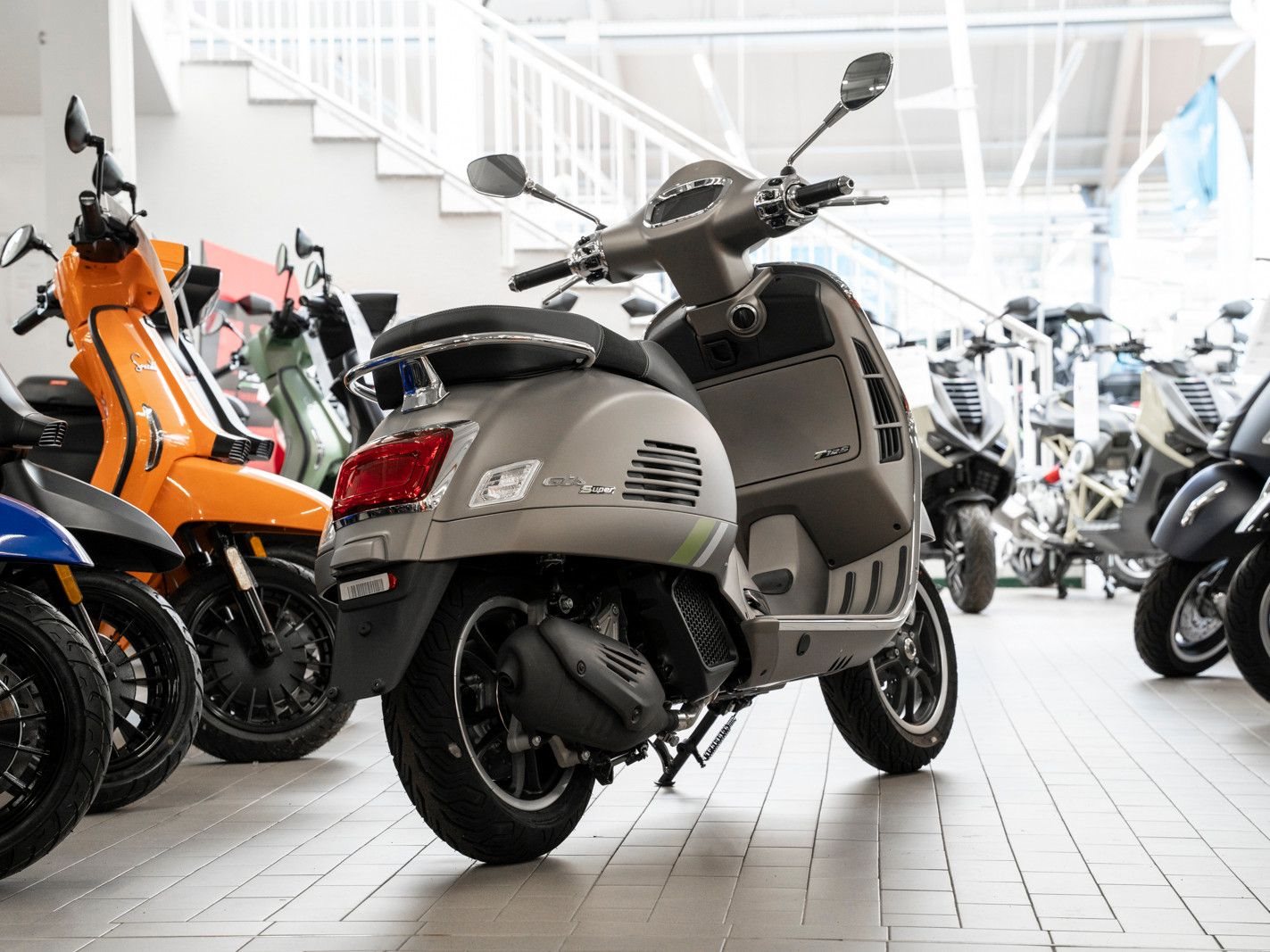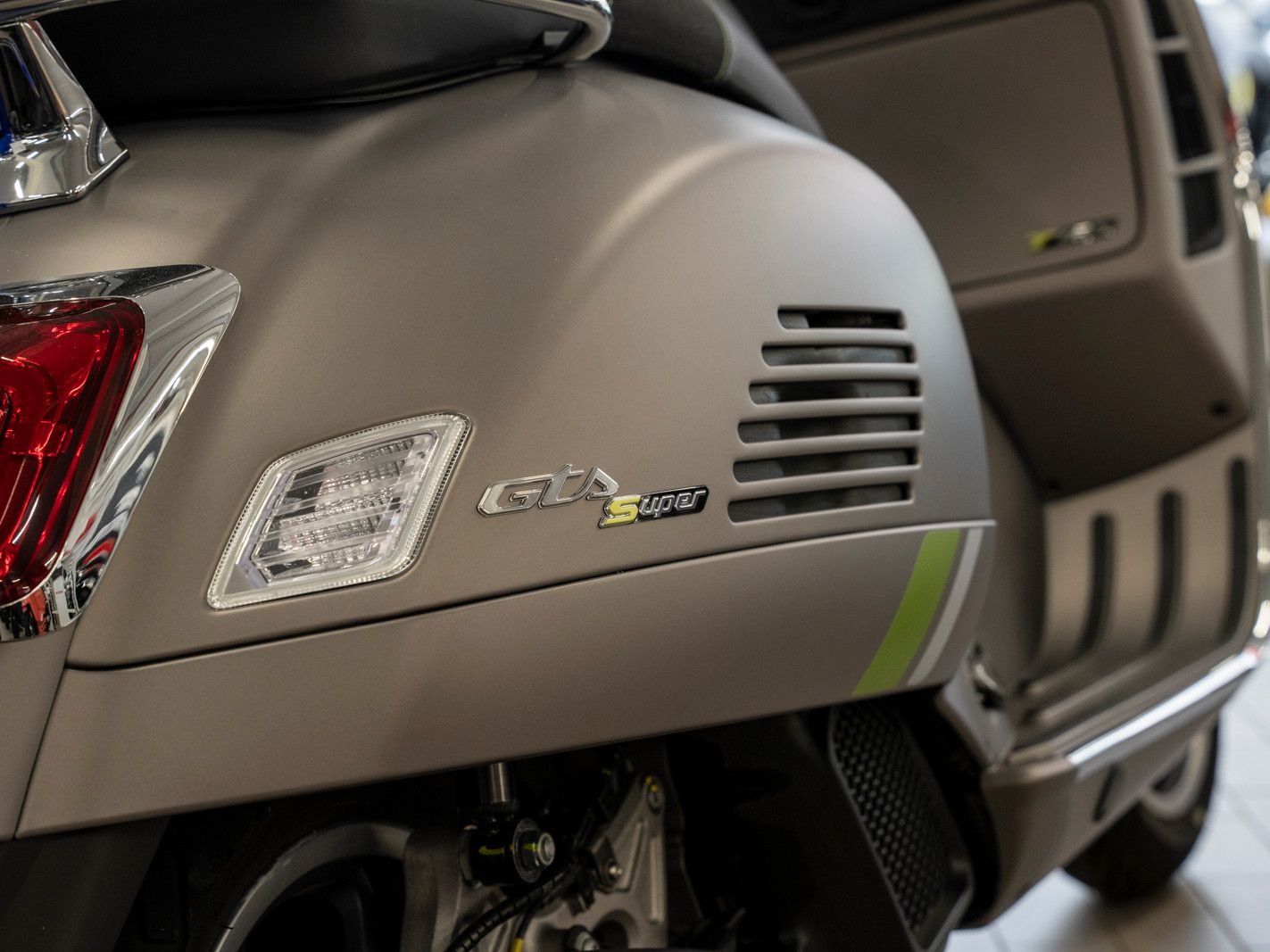 Die Vespa Gts SuperTech setzt ein Statement mit intensiven Farben, die durch glänzende und matte Lackierungen interpretiert werden und das hochtechnologische, raffinierte Design zur Geltung bringen.