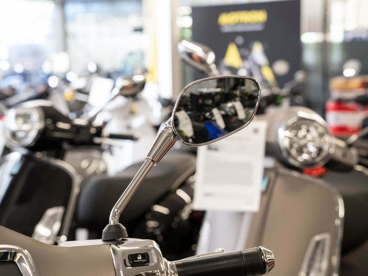 Darüber hinaus kannst du mit dem integrierten Konnektivitätssystem Vespa MIA Benachrichtigungen verwalten, Musik-Playlists abspielen und Anrufe auch per Sprachbefehl tätigen.