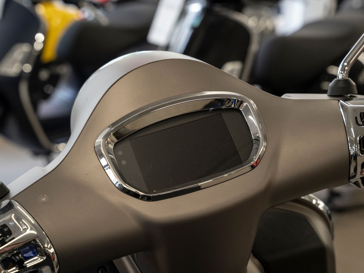 Das 5-Zoll-TFT-Farbdisplay ist ein echter Bordcomputer, der alle wichtigen Informationen über die Fahrt und den Zustand der Vespa liefert.