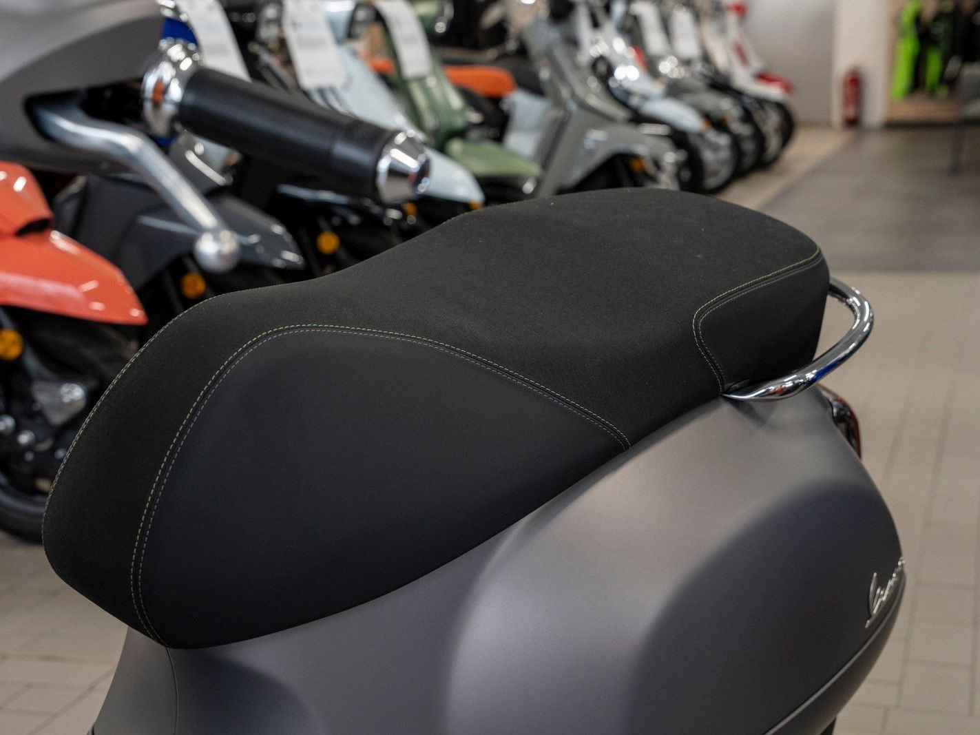 Chromlinien und fluoreszierende Details betonen seine futuristische Seele, während die schwarze Sitzbank mit kontrastierenden Nähten für einen zusätzlichen Hauch von Eleganz sorgt.