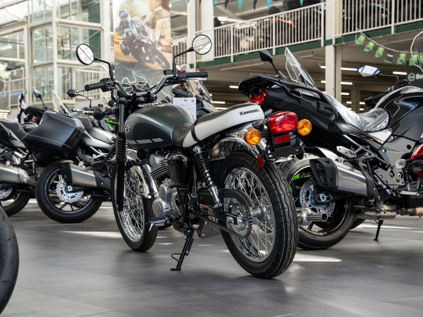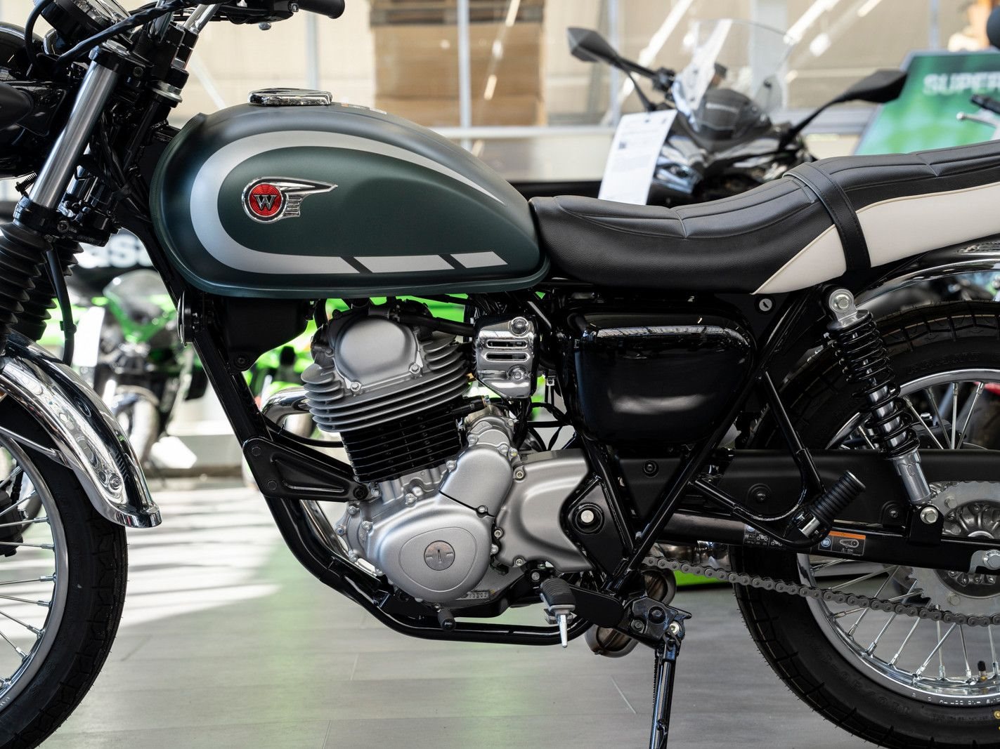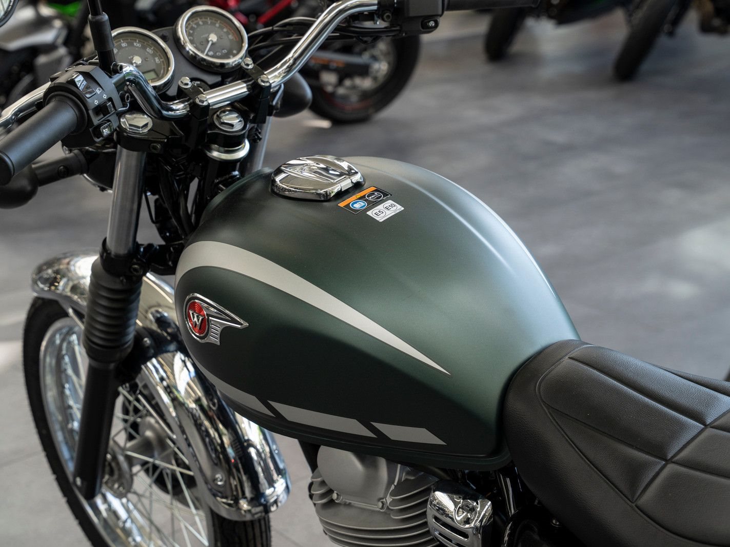 Das Design der brandneuen W230 ist von der 650-W1 von 1965 inspiriert und bietet mit dem bewährten 233-cm-Viertaktmotor mit Kraftstoffeinspritzung von Kawasaki ein modernes Kraftpaket.
