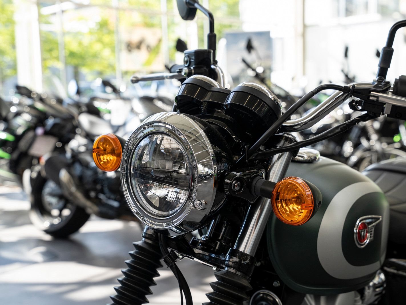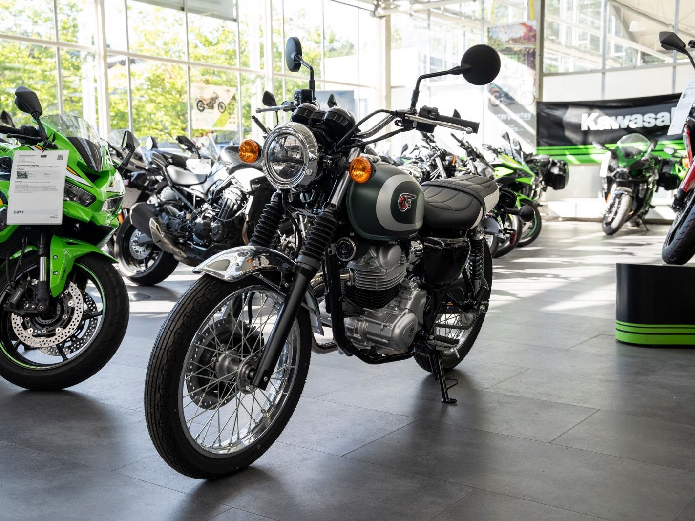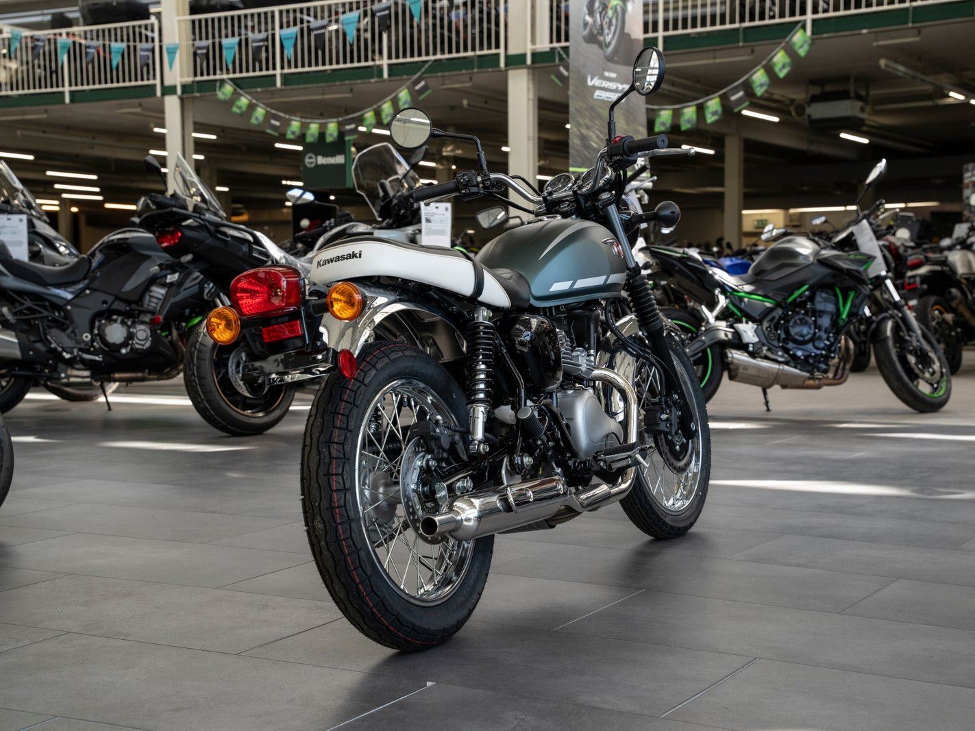 Das Design der brandneuen W230 ist von der 650-W1 von 1965 inspiriert und bietet mit dem bewährten 233-cm-Viertaktmotor mit Kraftstoffeinspritzung von Kawasaki ein modernes Kraftpaket.