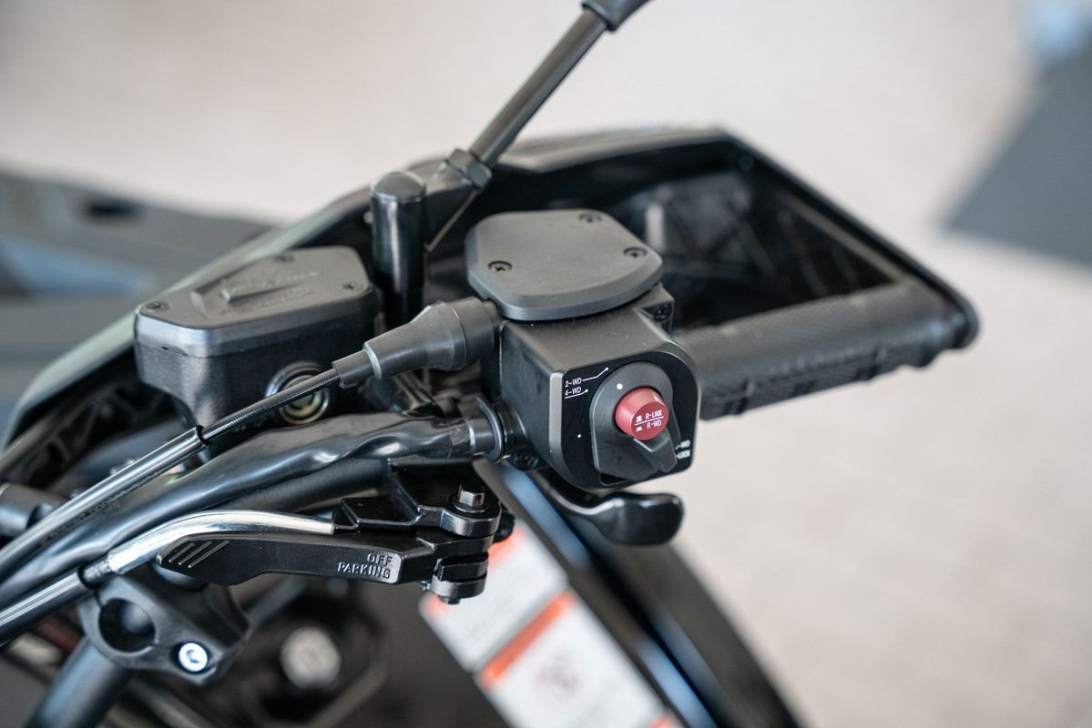 • Antrieb: CVT-Automatikgetriebe (H/L/N/P/R) mit elektrisch zuschaltbarem Allradantrieb (2WD/4WD) und Differentialsperre