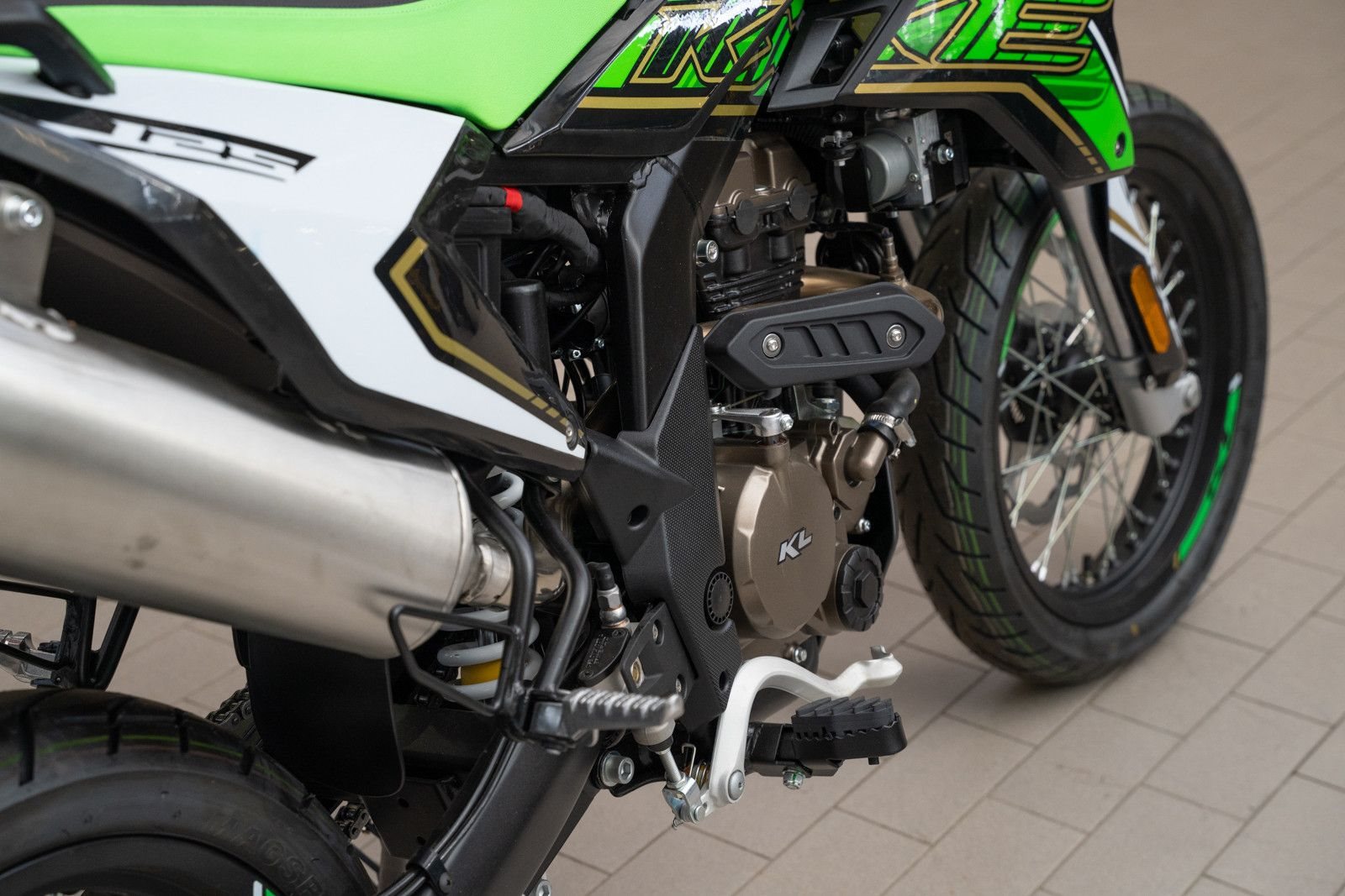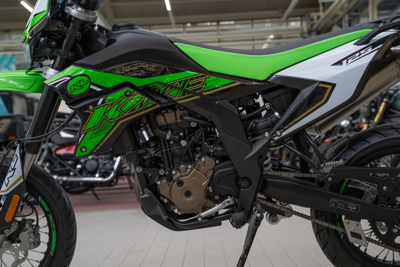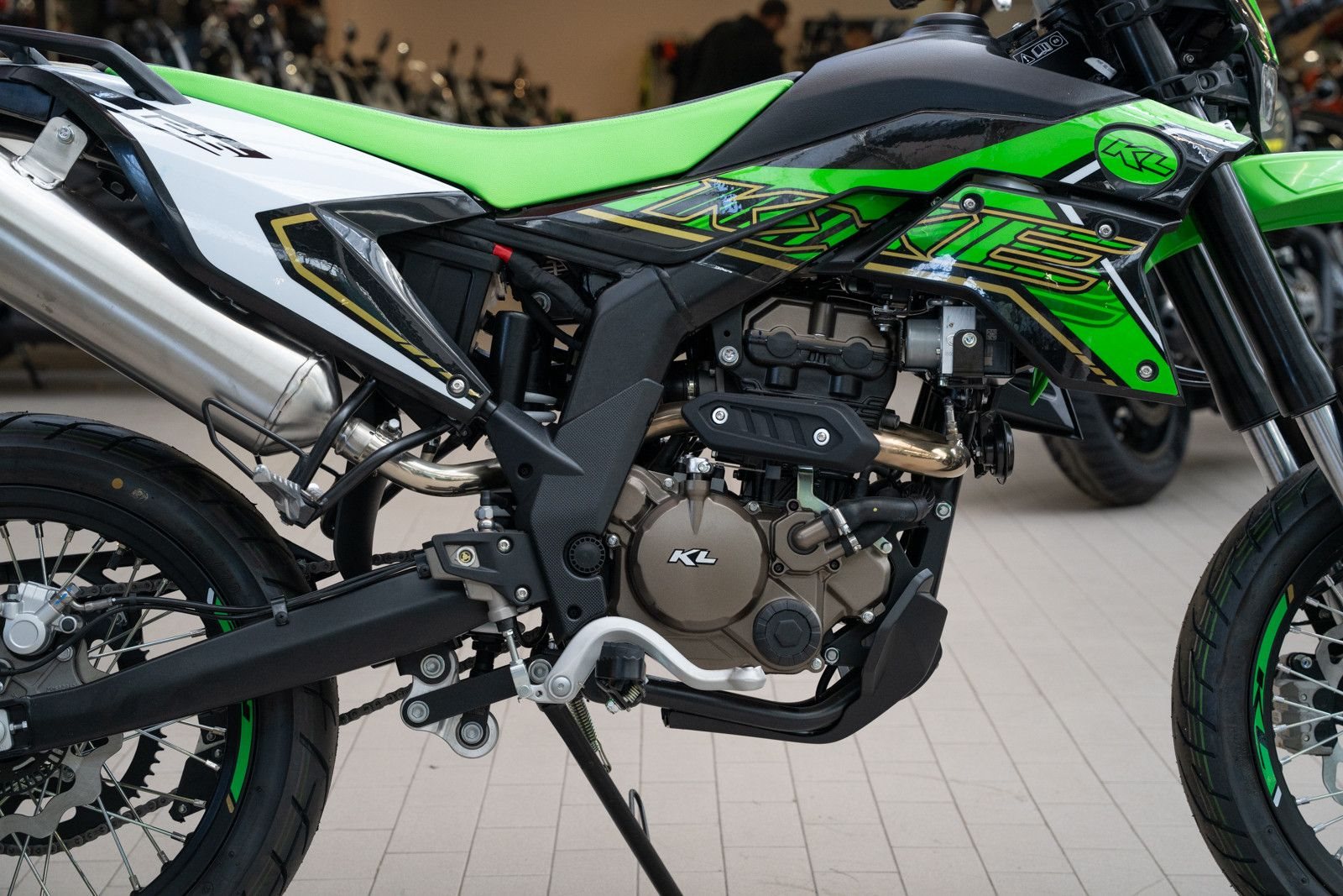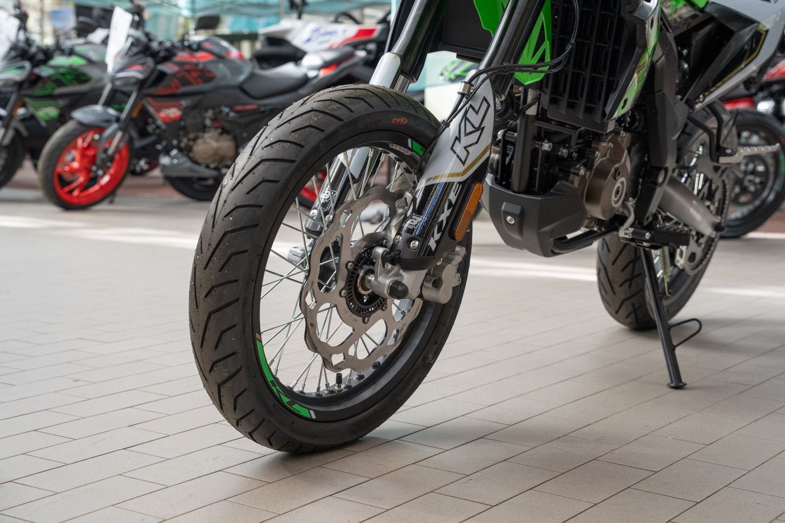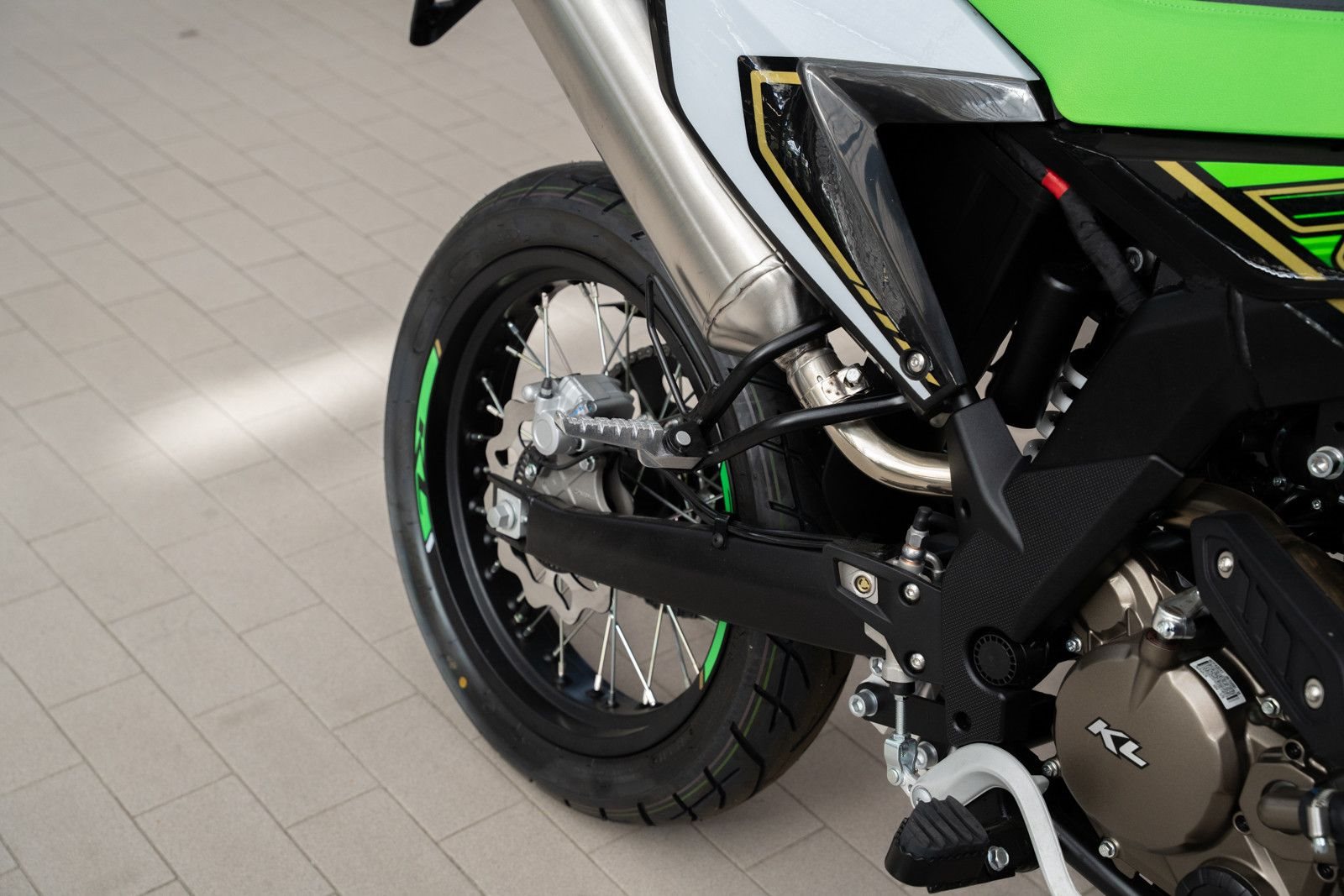 Die Supermoto-Version der KL KXE ist auf jedem Terrain souverän unterwegs und weiß mit extremer Wendigkeit und Stabilität zu überzeugen.
