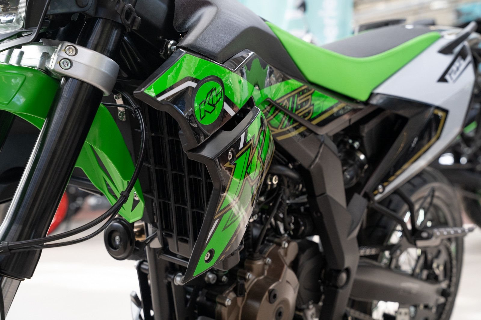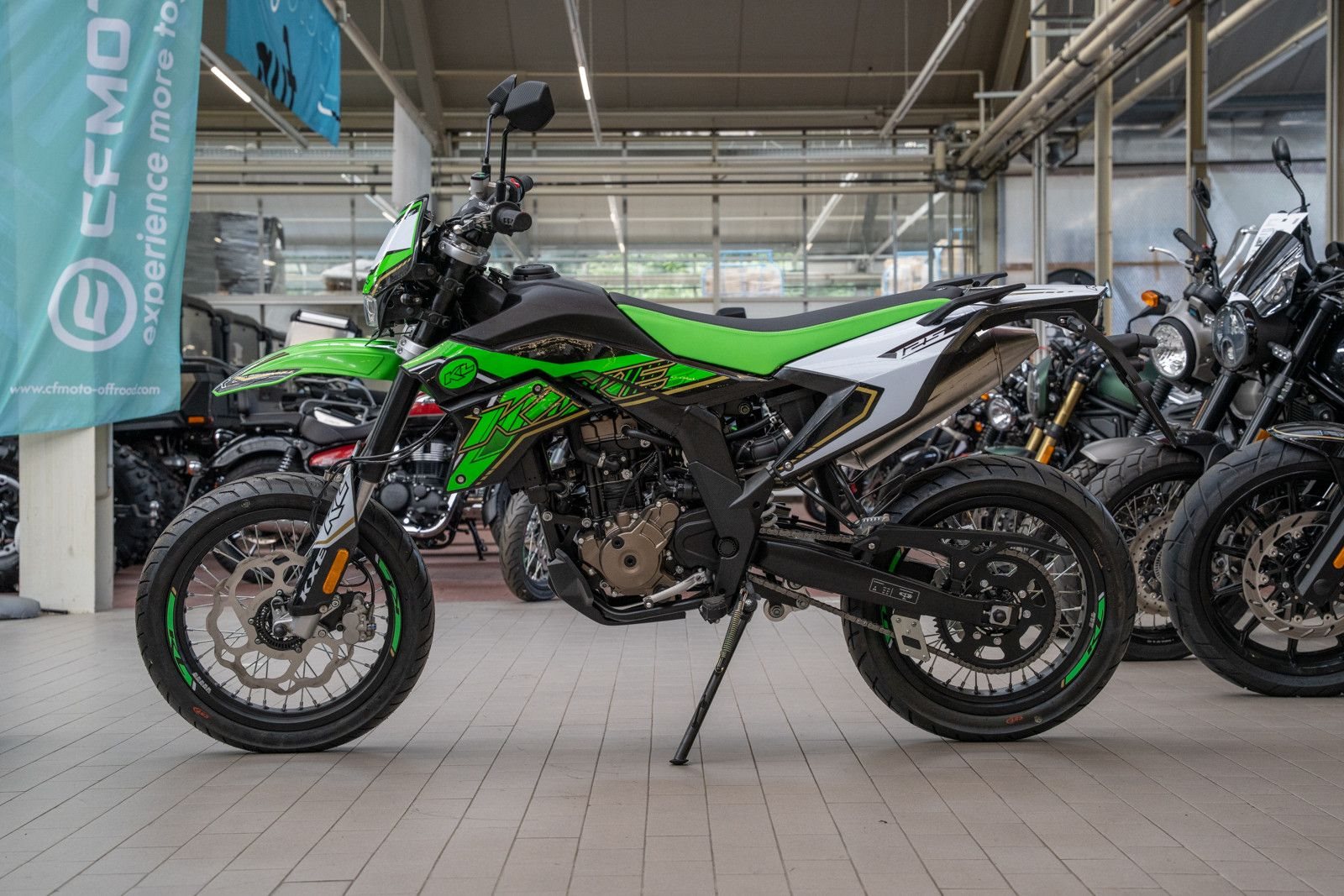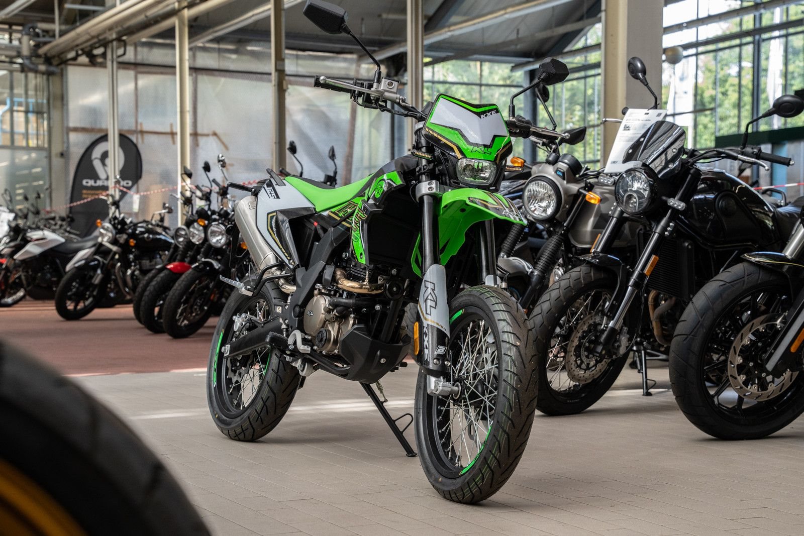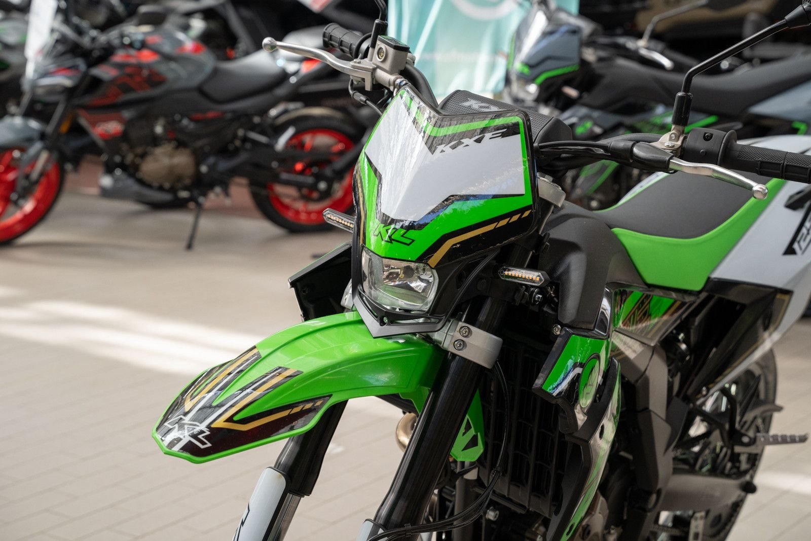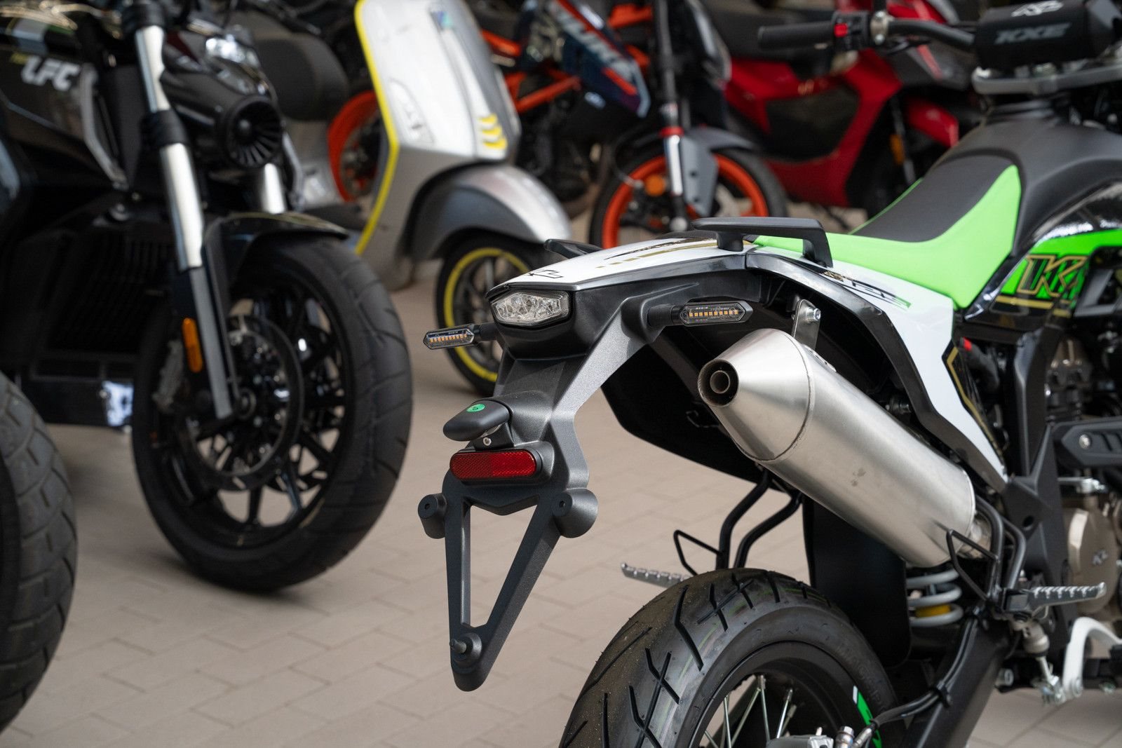 Die Supermoto-Version der KL KXE ist auf jedem Terrain souverän unterwegs und weiß mit extremer Wendigkeit und Stabilität zu überzeugen.