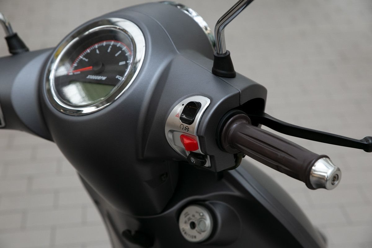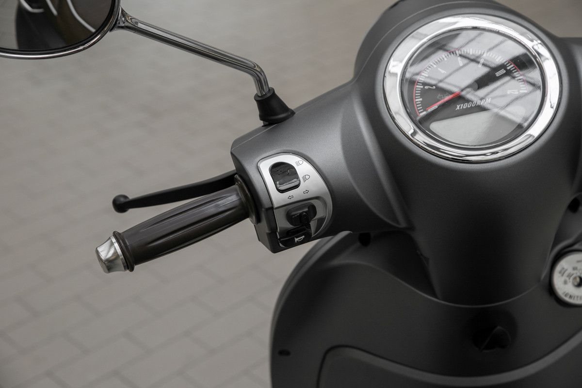 Mit einem größeren Motor als sein jüngerer Bruder ausgestattet, aber dem gleichen eleganten Retro-Look, ist der Ideo 125 auf der Stadtautobahn genauso gut unterwegs wie in der Innenstadt.