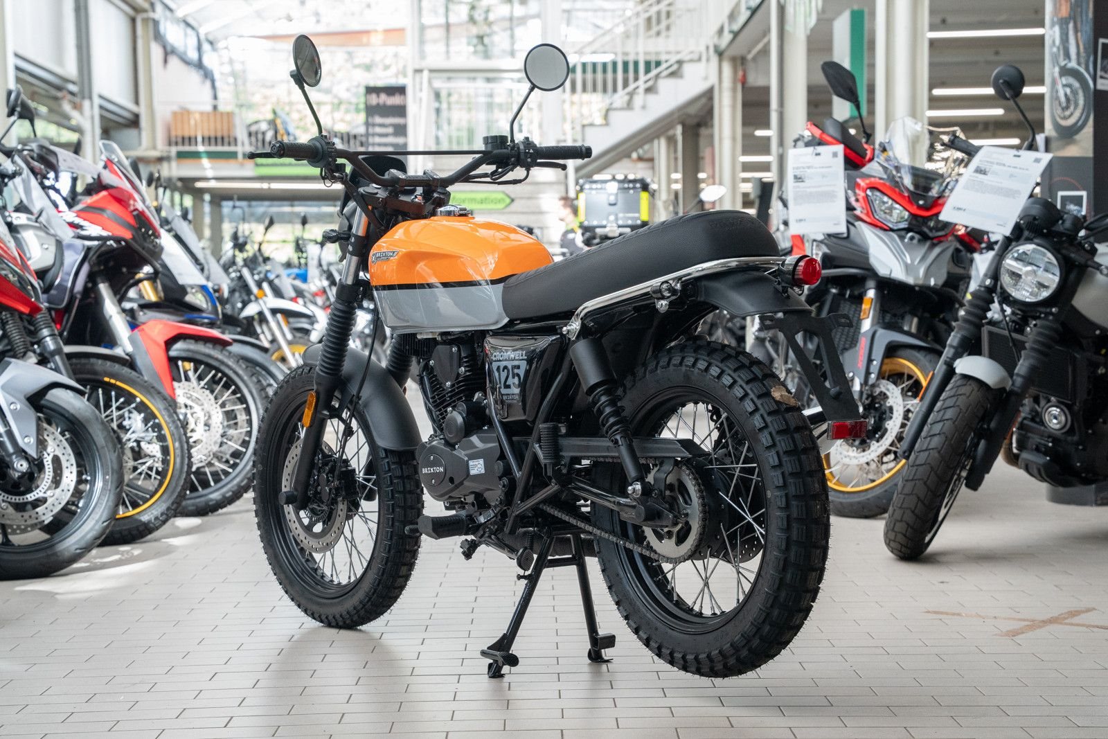 Zu der üppigen Serienausstattung bietet die BX125 X noch eine kernige Stollenbereifung, Schutzgitter für den Scheinwerfer, Windschild und eine um 2 cm erhöhte hintere Federung.