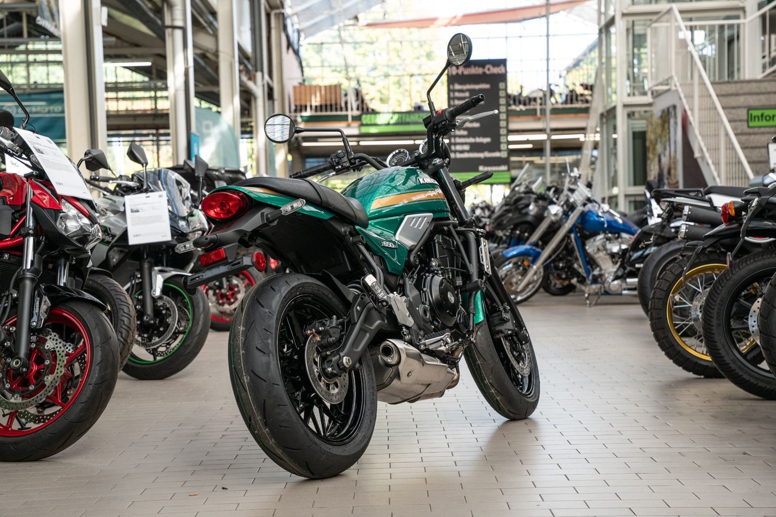 Das gesamteErscheinungsbild der Z650RS versprüht den Charme der Siebziger, während imverborgenen moderne Technologie höchsten Fahrspaß garantiert.