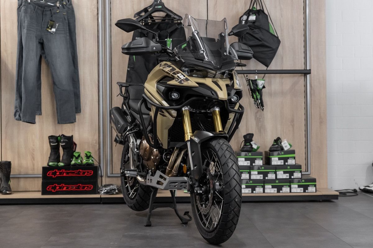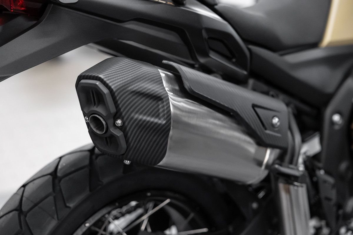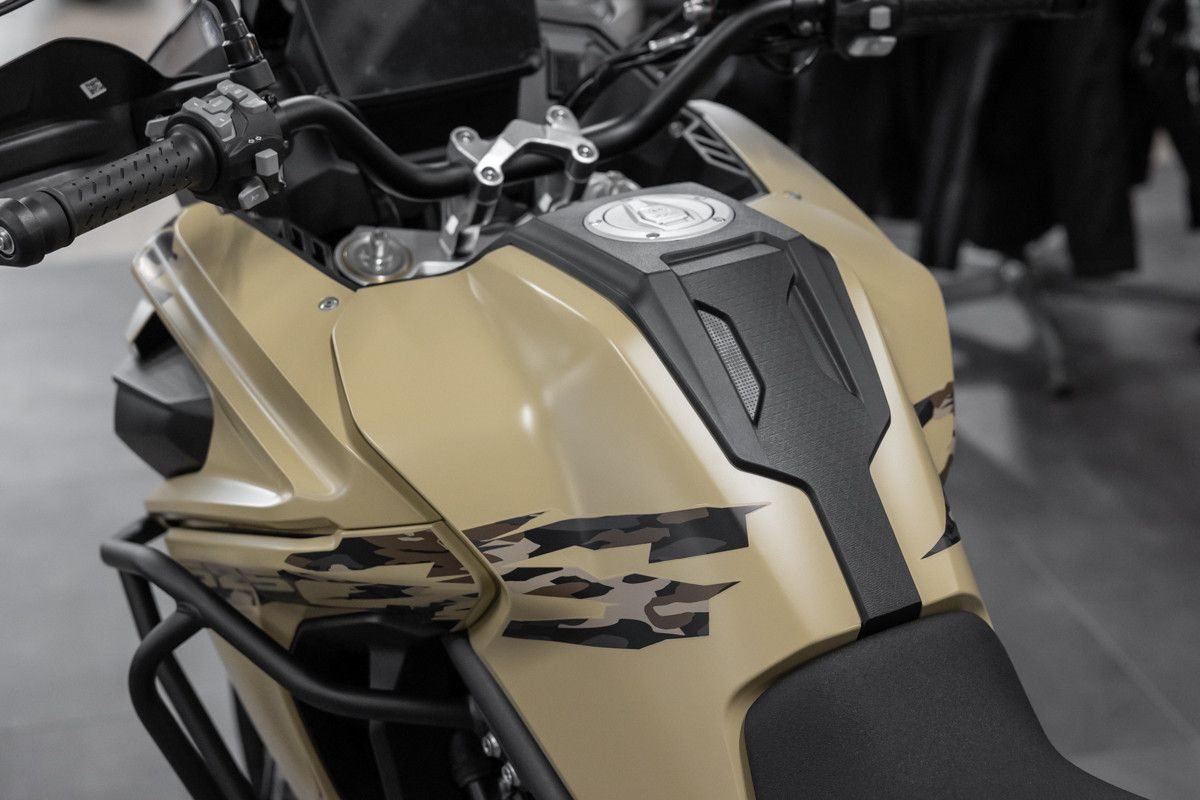 Der 581-ccm-Zweizylindermotor mit 63,9 PS liefert kraftvolle Performance auf jedem Terrain. Die 19- und 17-Zoll-Räder, die KYB-Federung mit 220 mm Bodenfreiheit und abschaltbares ABS machen sie ideal für anspruchsvolle Offroad-Touren.