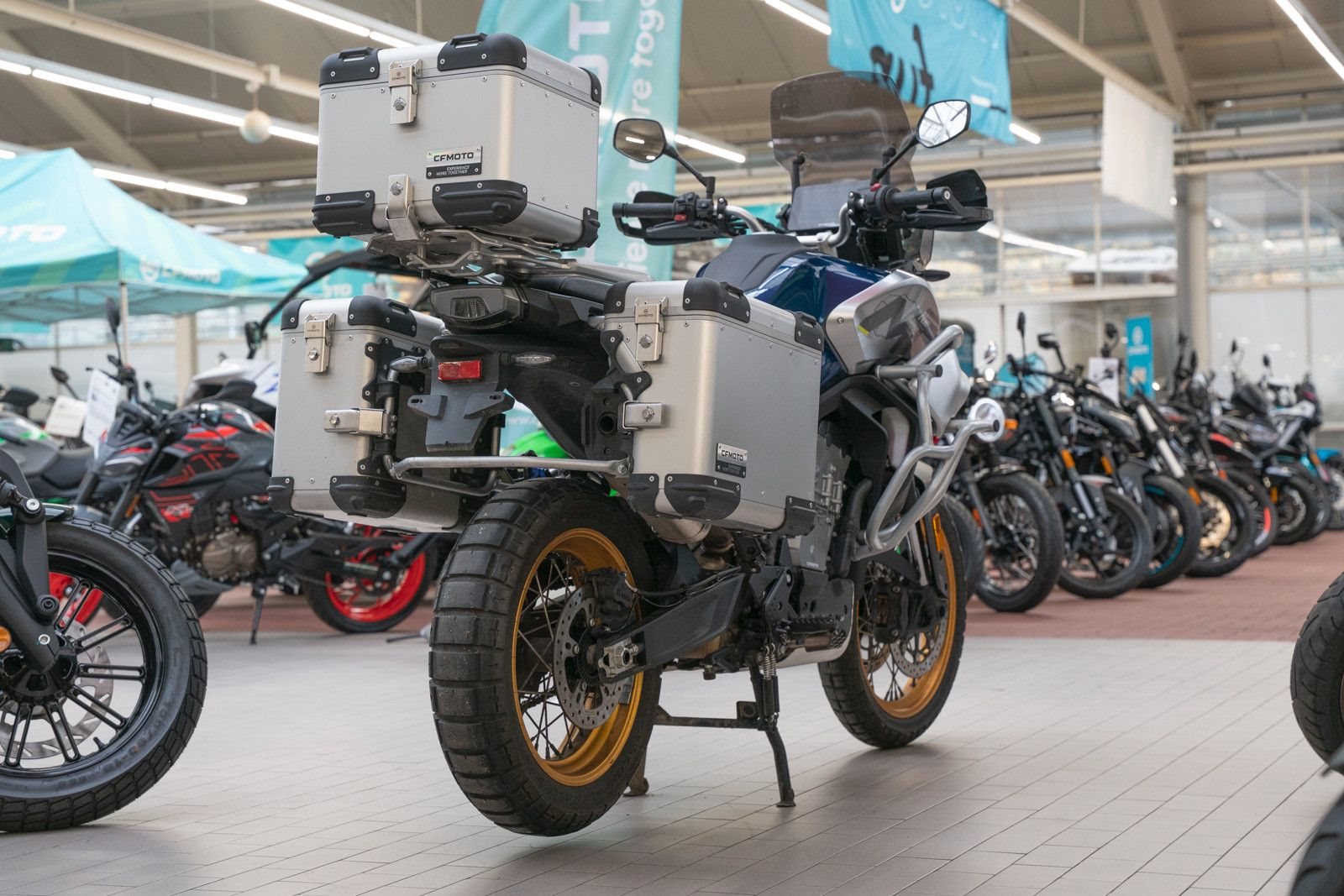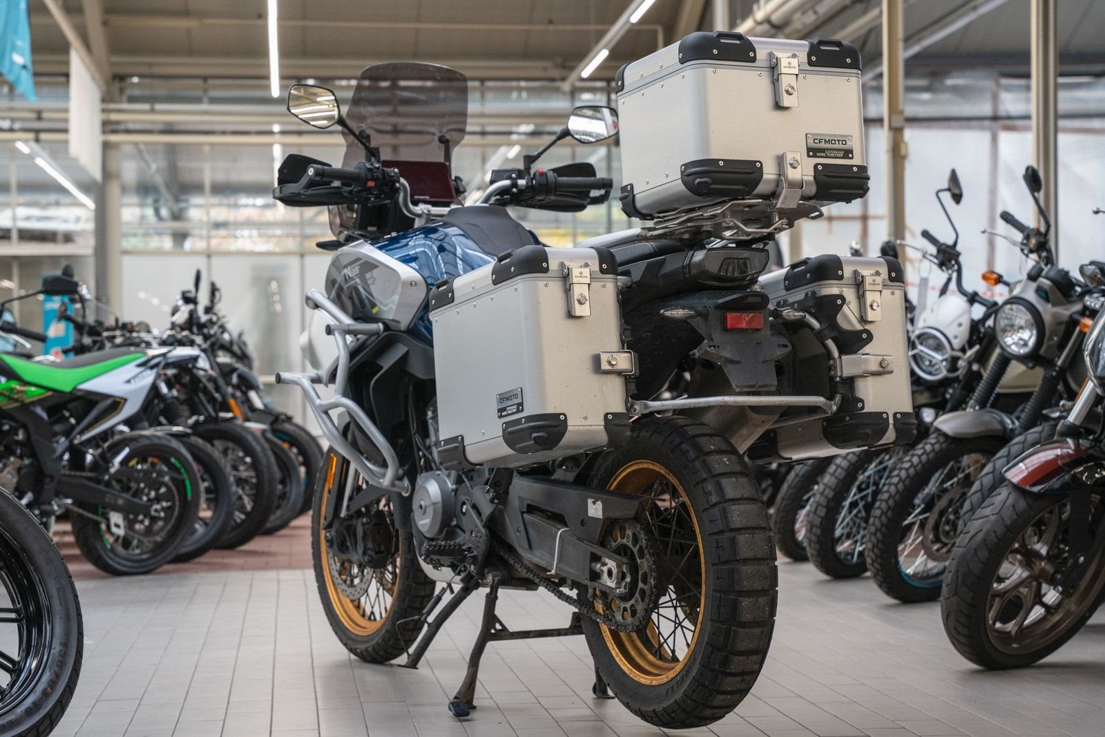 Wir verkaufen eine unfallfreie CFMOTO 800MT Touring aus 1.Hand. Die Maschine bekommt vor Auslieferung noch eine frische Inspektion und neuen TÜV. Das Fahrzeug ist zusätzlich ausgestattet mit erweiterten Sturzbügeln, Scottoiler, Handprotektoren und Touring Windschild. Originalteile sowie der serienmäßig verbaute Reifensatz mit ca.2500Km Laufleistung sind dabei.