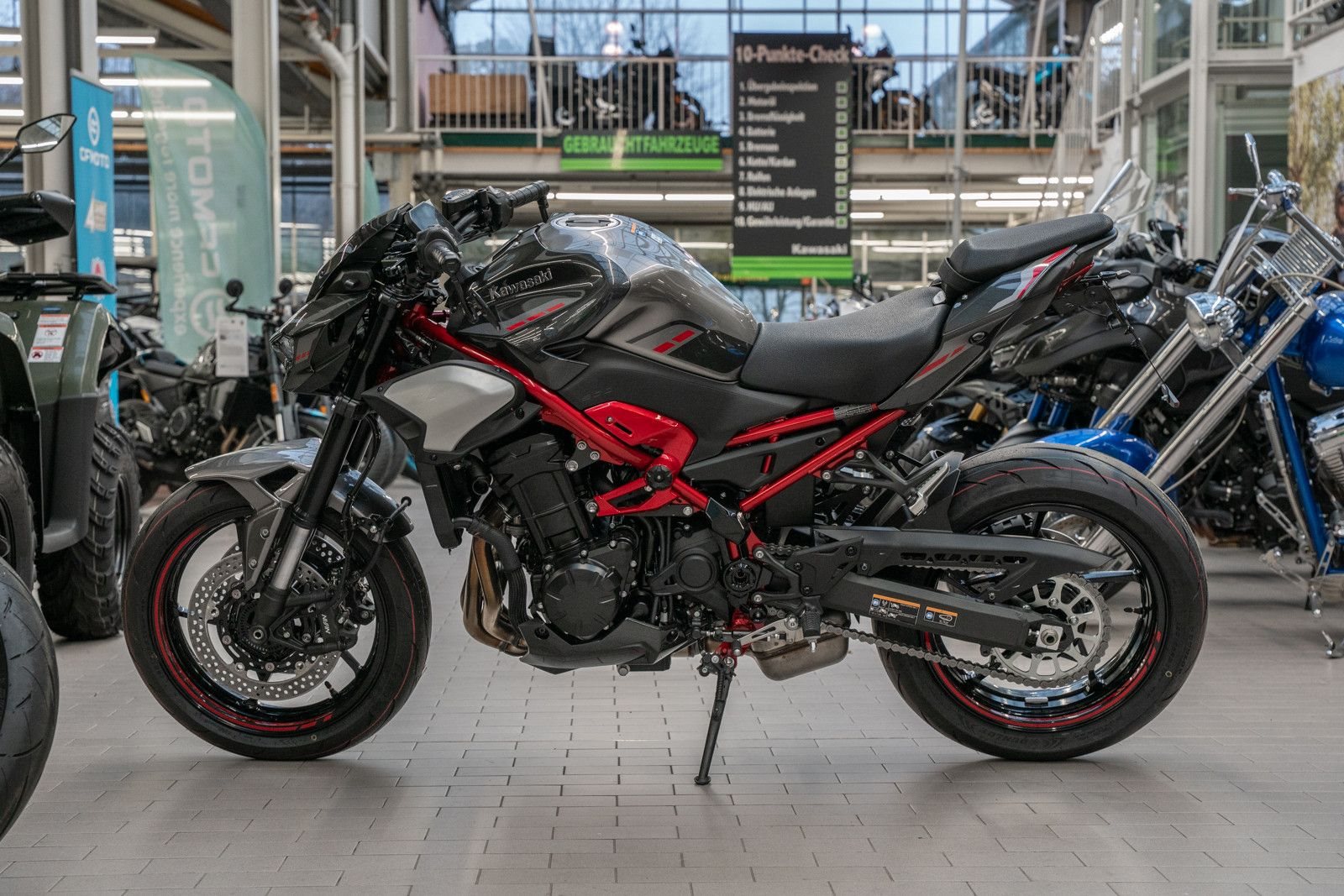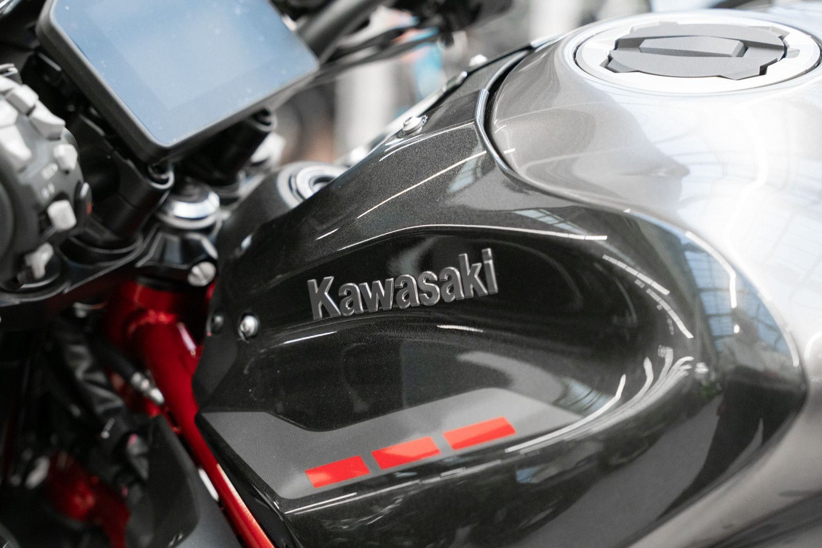 Mit ihrem markanten, aggressiven Sugomi-Design, ihrer erstklassigen Ausstattung und der geballten Power des 948-cm-Motors setzt die Z900 ein Statement auf jeder Straße.