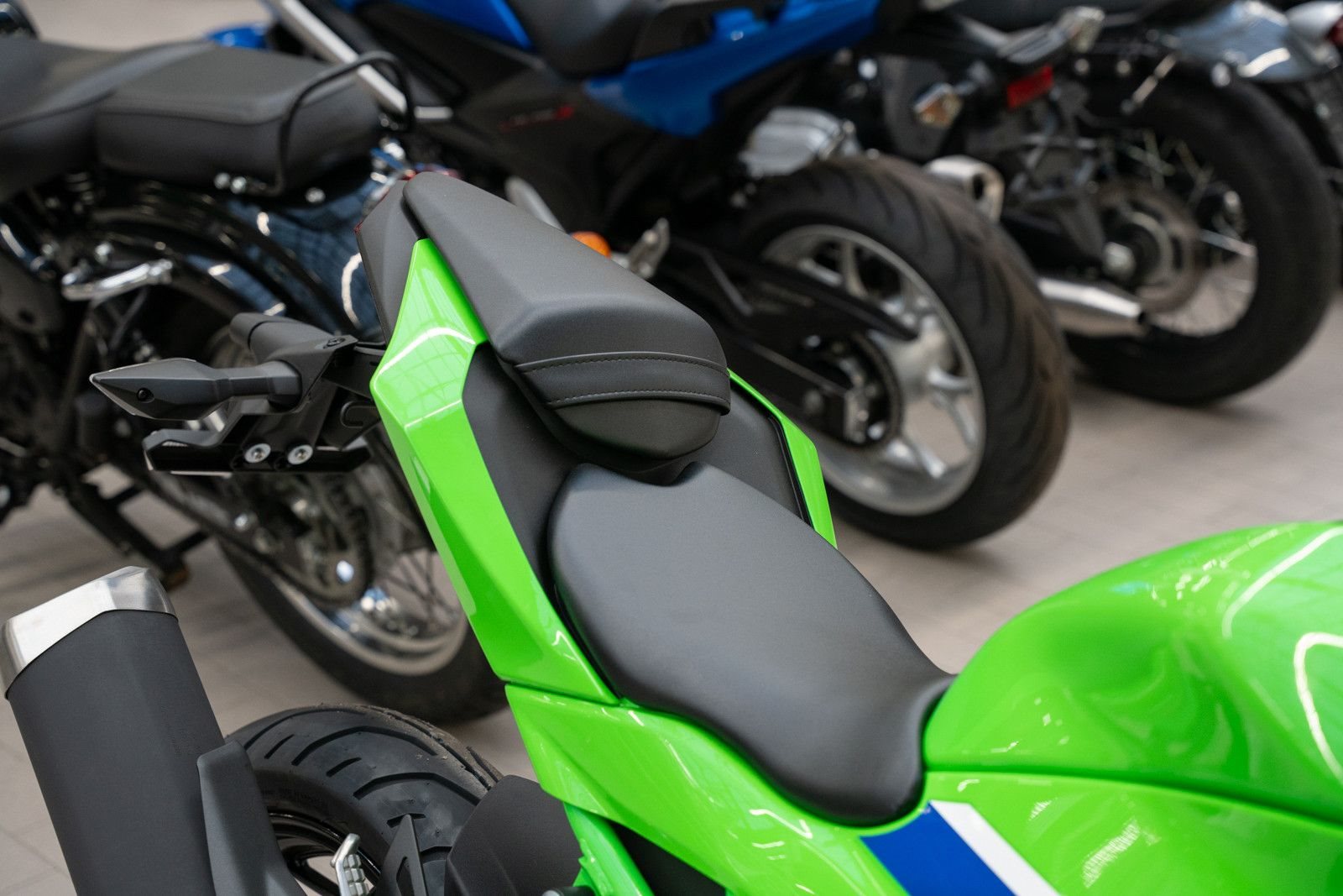 Die schmale Silhouette, die vom Kawasaki Racing Team inspiriert wurde, weist in Richtung Ninja ZX-10R.